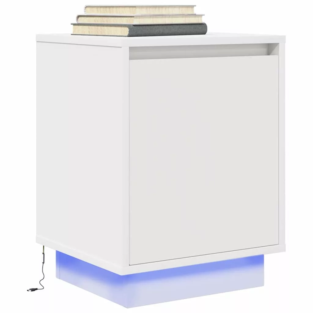 Dobja fel hálószobáját ezzel a LED-es világítással ellátott éjjeliszekrénnyel! Könnyen kiegészíti otthona bármelyik bútorstílusát! Stabil és tartós anyag: A szerelt fa tartós és stabil anyag sima felülettel, amely ellenáll a nedvességnek, a vetemedésnek és a hasadásnak, így megbízható választás különféle célokhoz.RGB LED fények a kellemes hangulatért: A LED-fények könnyen beállíthatók, így személyre szabott fényjátékot hozhat létre. Testre szabhatja az üzemmódokat, a színeket és a fényerőt, hogy javítsa belső tere hangulatát.Bőséges tárolóhely: Az éjjeliszekrény bőséges tárolóhelyet biztosít a magazinok, könyvek, poharak és más, az alváshoz szükséges dolgok számára, így azok rendezettek és elérhető közelségben maradnak.Stabil felső: Az éjjeliszekrény stabil teteje tökéletesen alkalmas asztali lámpák, ébresztőórák, könyvek, képkeretek, kis cserepes növények, dekorációk vagy más alapvető dolgok elhelyezésére.Könnyen karbantartható: A sima felületének köszönhetően az éjjeliszekrény könnyen tisztítható nedves ruhával, és kevesebb karbantartást igényel. Figyelem:A felborulás elkerülése érdekében ezt a terméket a mellékelt fali rögzítőeszközzel kell használni. Jó tudni:A termék USB-csatlakozóval rendelkezik, amelyhez hitelesített, 5 V-os USB áramforrás szükséges (nem alaptartozék). Ez a termék DC 5V-ról működik, de a tanúsított 5V-os USB-tápforrást nem tartalmazza. A magasabb feszültség túlmelegedést okozhat, ami a készülék károsodását, valamint a túlmelegedés és a tűz esetleges kockázatát okozhatja.