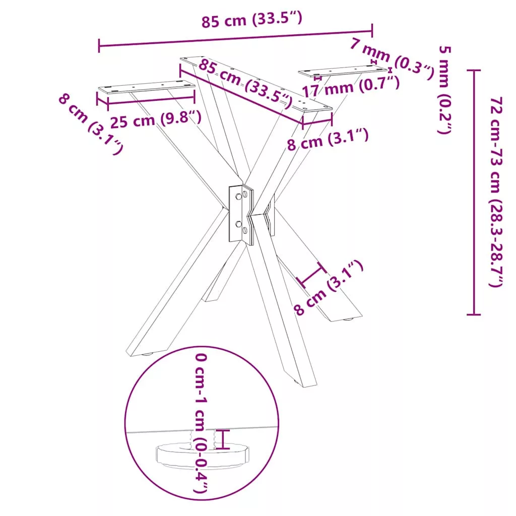 vidaXL étkezőasztal pók alakú fekete acél láb 85x85x(72-73) cm