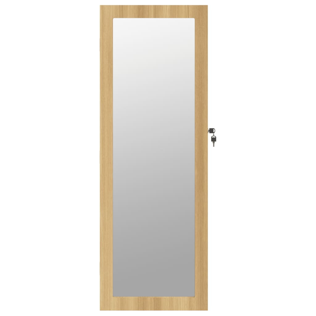Tartsa távol ékszereit és parfümjeit diszkréten és elegánsan ezzel a stílusos tükrös ékszertartóval! Tartós anyag: A szerelt fa kivételes minőségű, sima felületű, szilárd, stabil, és ellenáll a nedvességnek. A szerelt fából készült ékszerszekrény könnyen tisztítható nedves ruhával. Bőséges tárolóhely: A tárolótükör rengeteg kampót, akasztót és polcot kínál, hogy ékszereit rendezetten és elérhető helyen tartsa.Praktikus tükör: A teljes alakos tükörrel ez az ékszerrendező kiválóan alkalmas készülődéshez és sminkeléshez.Megfontolt védelem: Az ékszertároló zárható ajtóval és 2 kulccsal rendelkezik, hogy biztosítsa a tárgyak biztonságát. Ezenkívül a belső puha szövethuzat nemcsak eleganciát ad, hanem megóvja szeretett ékszereit a karcolásoktól.Helytakarékos kialakítás: Akassza fel a tükrös ékszerdobozt az ajtó fölé a mellékelt kampókkal, vagy szerelje fel a falra, hogy helyet takarítson meg. Jó tudni:A falra szereléshez szükséges csavarok mellékelve vannak.