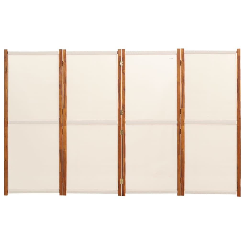 Ez a térelválasztó tökéletes egy szeparált, privát terület vagy rész kialakításához bel- vagy kültéri környezetében. Prémium minőségű anyag: A tömör akácfa egy gyönyörű természetes anyag. Az akácfa egy trópusi keményfa, amely sűrű erezetű, masszív és tartós. Az erős textilén időjárásálló és könnyen tisztítható is.Összehajtható kialakítás: Ez a többpaneles paraván a helytakarékosság érdekében használaton kívül könnyen összehajtható.Multifunkciós: Ez a szobaparaván dekorációként és térelválasztóként is használható. Tökéletes egy terület leválasztására privát szféra létrehozásához vagy egy extra helyiség kialakításához.