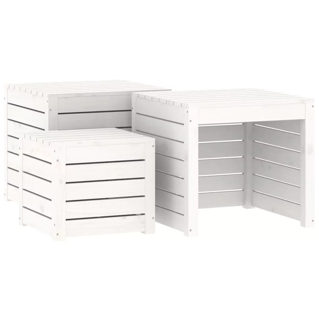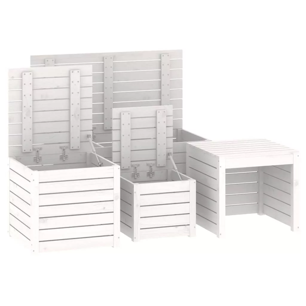 fehér 4 részes tömör fenyőfa kerti ládaszett