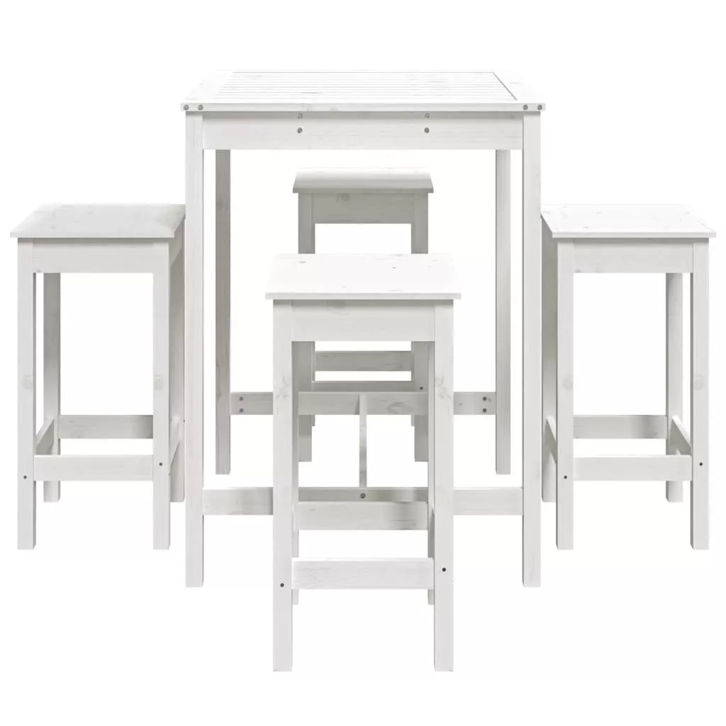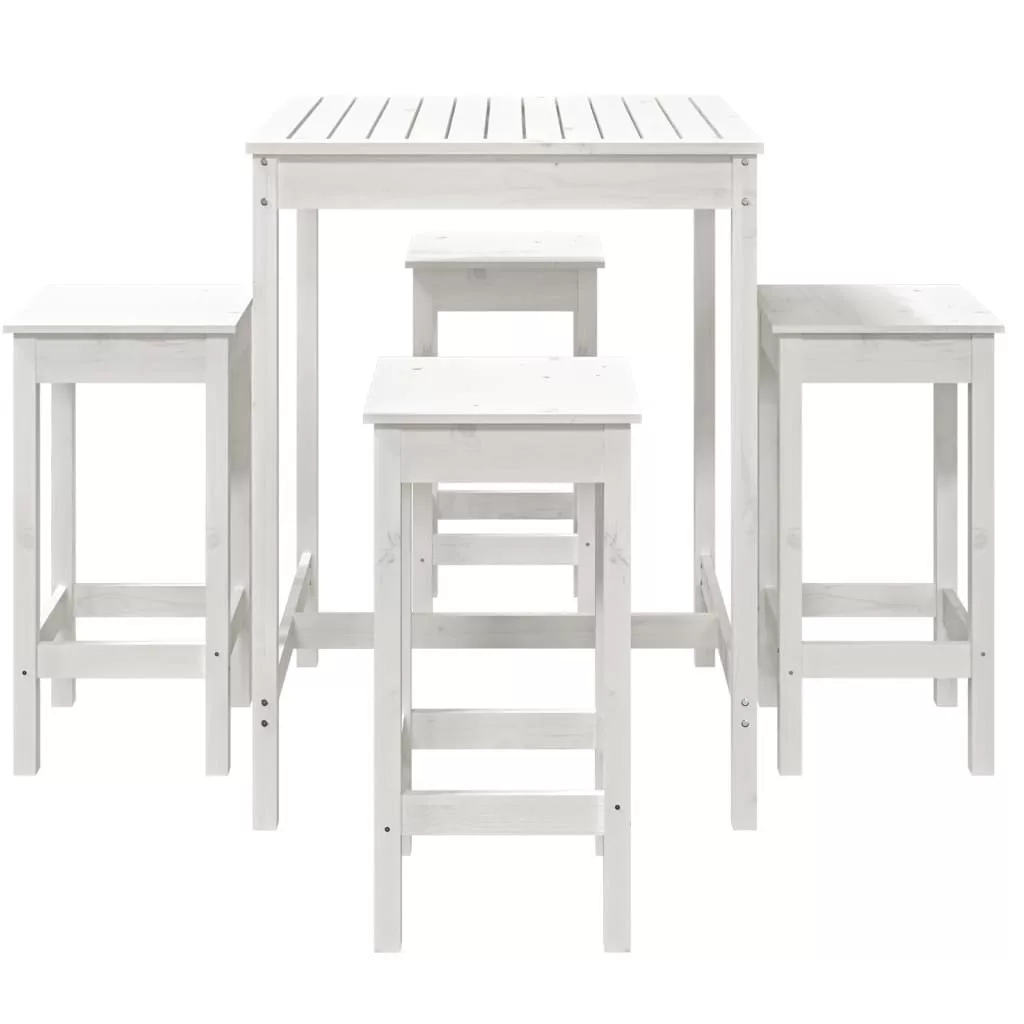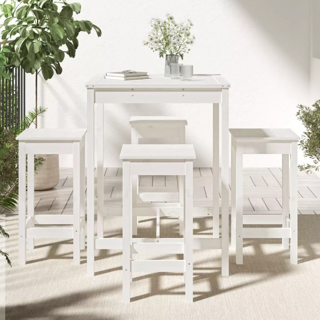Kortyolgassa kedvenc italát vagy fogyasszon el egy kellemes vacsorát családja vagy barátai társaságában ennél a gyönyörű, fából készült kerti bárszettnél ülve. Tömör fenyőfa: Ez a bárszett tömör fenyőfából készült. A tömör fenyőfa egy gyönyörű, természetes anyag. A fenyőfa egyenes erezetű, a csomók pedig jellegzetes, rusztikus megjelenést biztosítanak az anyagnak.Masszív felső lap: A bárszett bárasztala masszív asztallappal rendelkezik, amely ideális helyet nyújt italok, ételek vagy dísztárgyak számára.Praktikus kialakítás: A fa bárszékeknek nincs háttámlájuk, így bármely oldalukon kényelmesen ülhet, használaton kívül pedig a pult alatt tárolhatja őket.Sokoldalú felhasználás: A minimalista kialakítású udvari bárszett a kert, udvar, erkély stb. bármely sarkába illeni fog. Megjegyzés:A kültéri bútor szépségének megőrzése érdekében javasoljuk, hogy vízálló huzattal fedje be. Maximum 110 kg ülésenként.