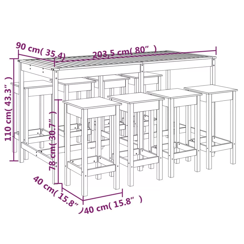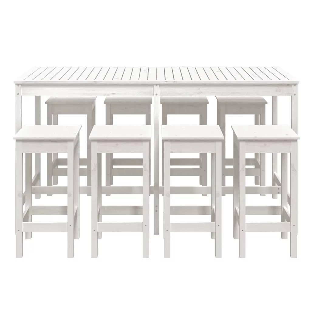 fehér 9 részes tömör fenyőfa kerti bárszett