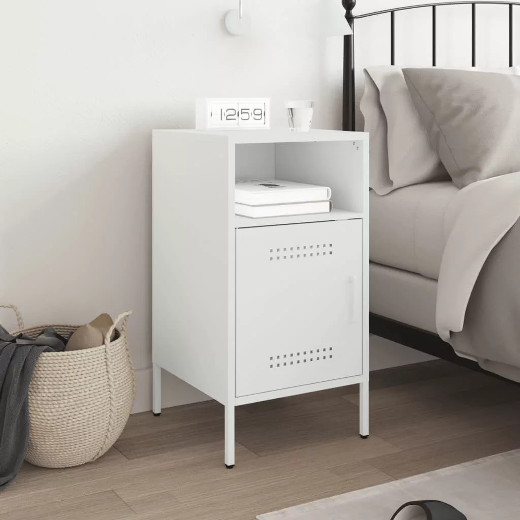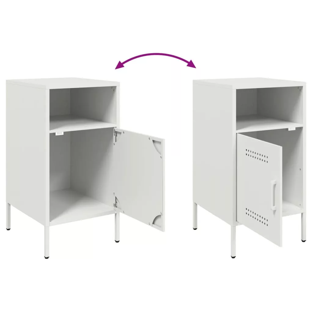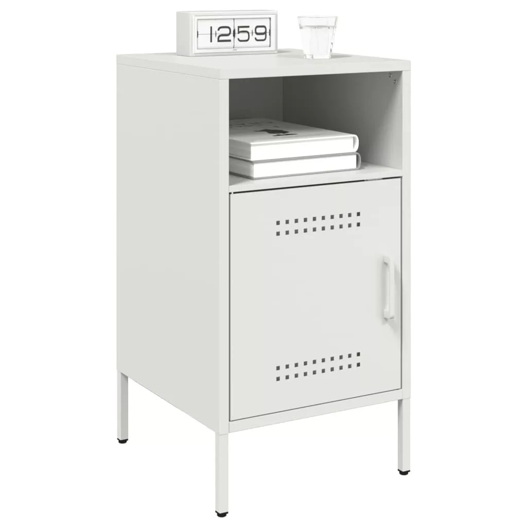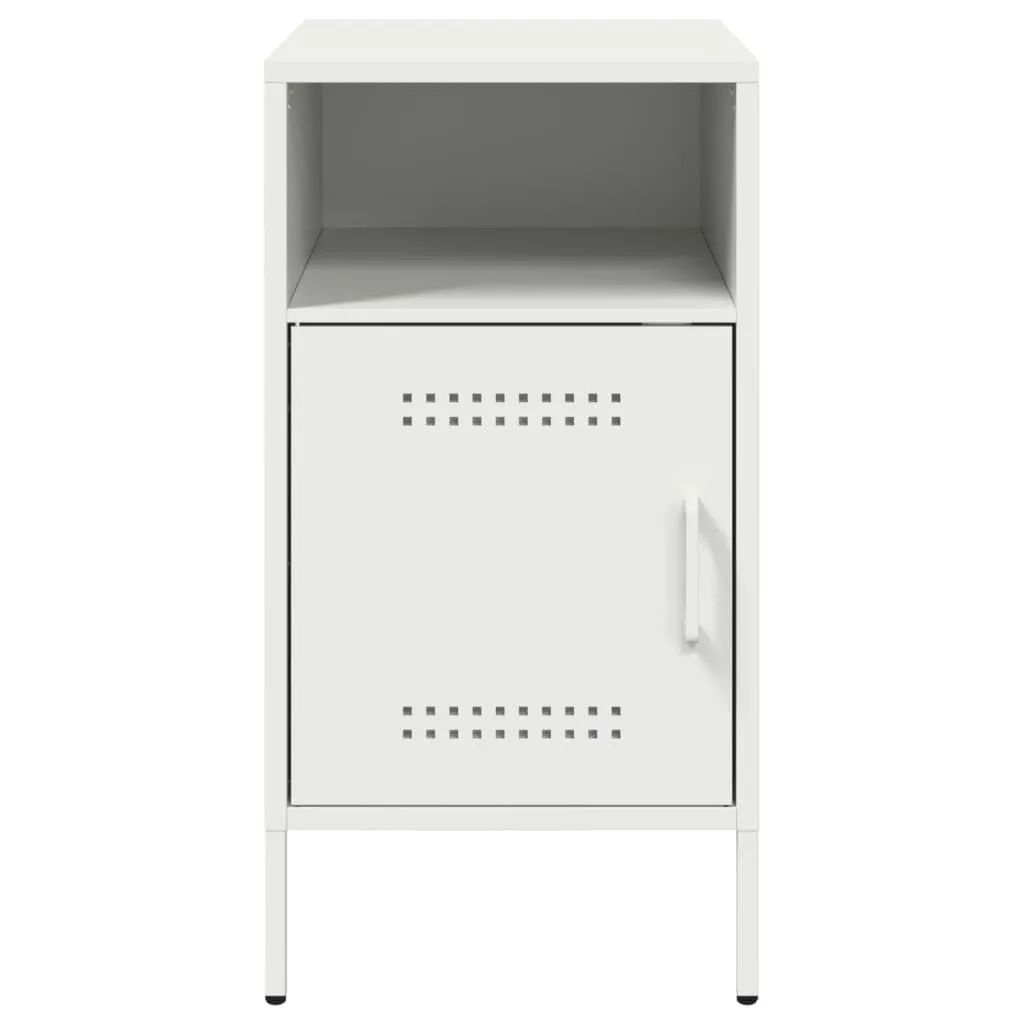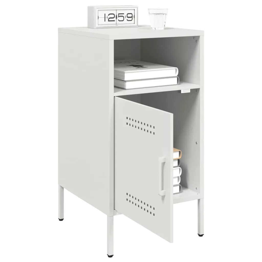 Ez a masszív éjjeliszekrény nappalija vagy hálószobája időtlen kiegészítője lesz. Stabil anyag: A szekrény váza hidegen hengerelt acélból készült. A hidegen hengerelt acél egy alacsony széntartalmú acél, amelyet hideghengerelési eljárással állítanak elő, és közel normál szobahőmérsékleten dolgoznak fel. A hidegen hengerelt acél simább felületű, valamint nagyobb szilárdságú és pontosságú.Bőséges tárolóhely: Ez az éjjeliszekrény bőséges helyet biztosít folyóiratai, könyvei, DVD-i, távirányítói, és egyéb apró holmijai kézközelben történő rendezett tárolásához.Állítható csavarlábak: Ez a kisszekrény négy állítható csavarlábbal lett felszerelve, hogy kiegyenlítse az egyenetlen padlót, így biztosítva a stabilitást és az egyensúlyt.Praktikus ajtó: Az ajtó segít tisztán és rendezetten tartani a teret azáltal, hogy elrejtheti mögöttük az apróbb dolgokat.Könnyen tisztítható: A fém szekrény nedves ruhával könnyen tisztítható, és kevesebb gondozást igényel. Figyelem:A felborulás elkerülése érdekében ezt a terméket a mellékelt fali rögzítőeszközzel kell használni.