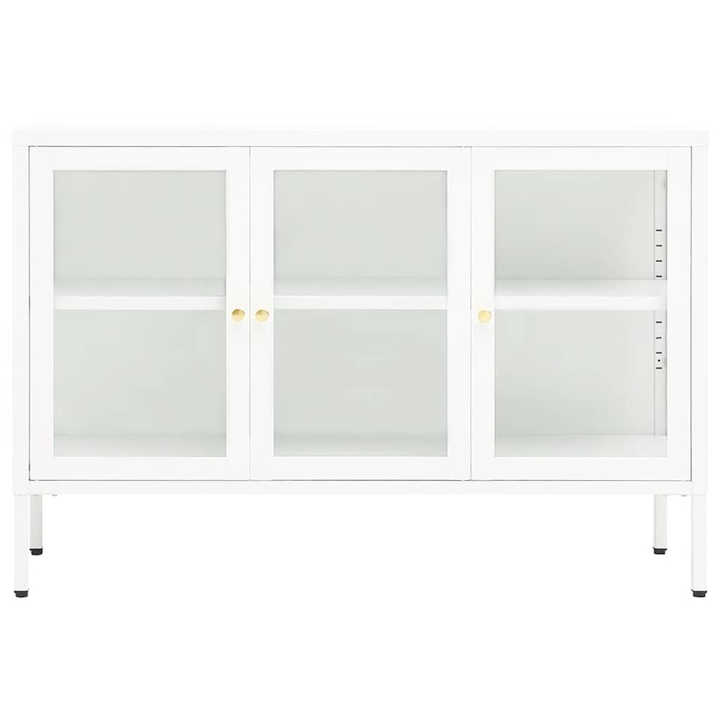 fehér acél és üveg tálalószekrény 105 x 35 x 70 cm
