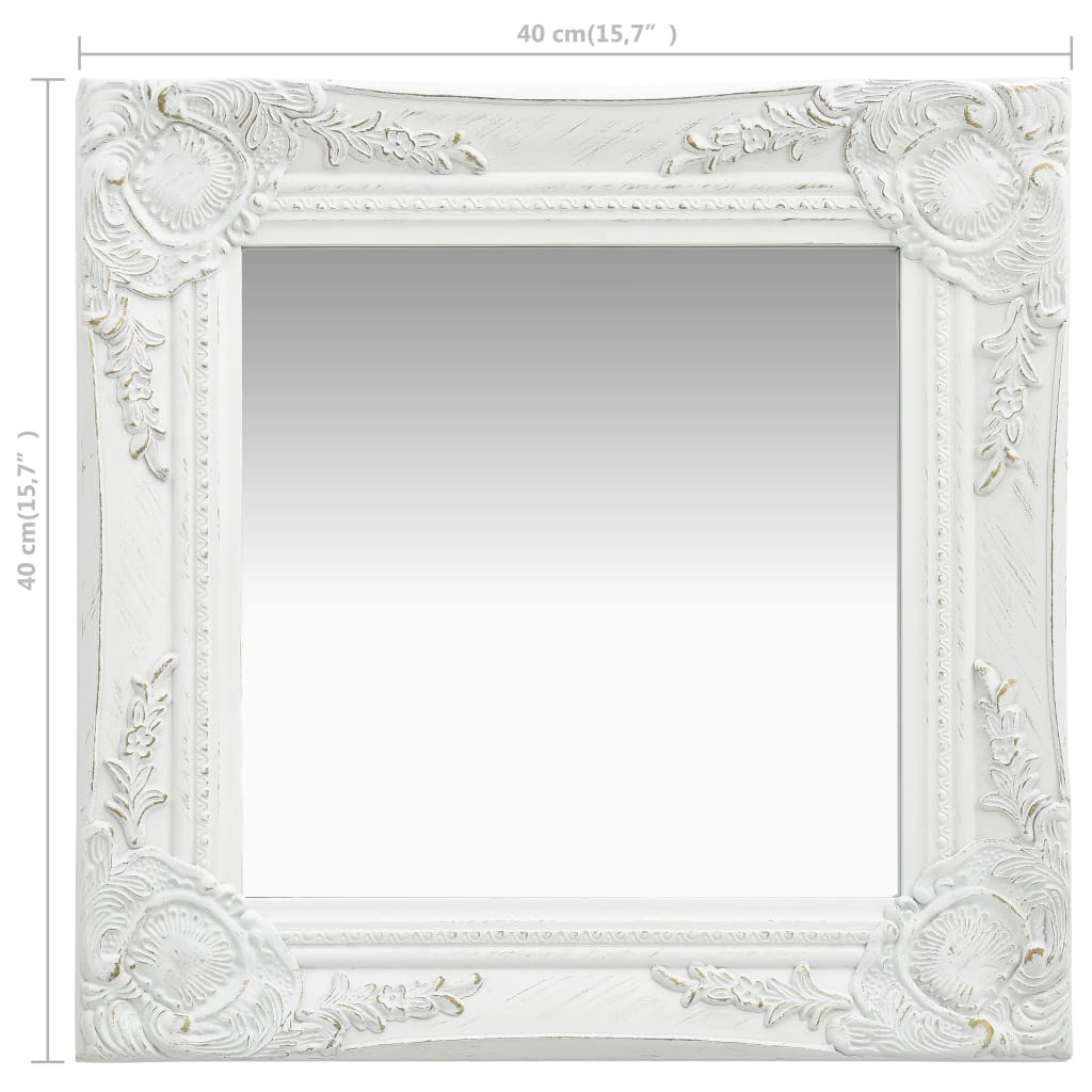 fehér barokk stílusú fali tükör 40 x 40 cm
