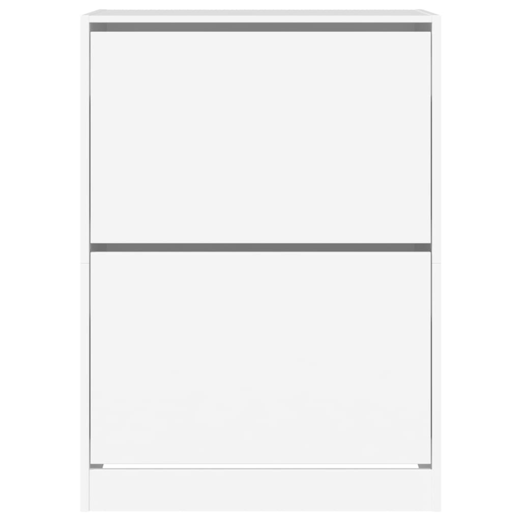 Tartsa rendezetten és mindig elérhető helyen cipőit ezzel a cipőtároló szekrénnyel! Tartós anyag: A szerelt fa kivételes minőségű, sima felületű, szilárd, stabil, és ellenáll a nedvességnek.Helytakarékos kialakítás: A cipőszekrény optimálisan használja ki a függőleges teret, és kis alapterületet foglal el, így különösen alkalmas kis helyiségekbe.Bőséges tárolóhely: A cipőtároló szekrényben kihajtható fiókok találhatók, amelyek elrejtik a cipőket, hogy tiszta és rendetlenségmentes teret biztosítson.Divatos kialakítás: A cipőszekrény letisztult vonalaival és minimalista megjelenésével egy csipetnyi modern hangulatot csempész otthonába. Figyelem:A felborulás elkerülése érdekében ezt a terméket a mellékelt fali rögzítőeszközzel kell használni.