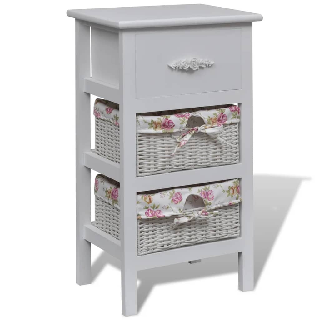 fehér császárfa szekrény 1 fiókkal és 2 kosárral