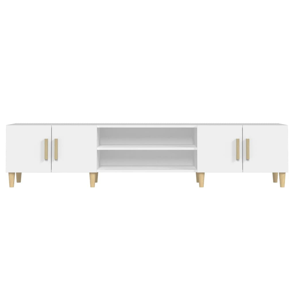 Ez a divatos TV-szekrény letisztult és stílusos dizájnnal dekoratív és praktikus kiegészítője lehet szobájának. Tartós anyag: A műfa kivételes minőségű, sima felületű, emellett erős, stabil és nedvességálló.Bőséges tárolóhely: A TV-szekrény 4 rekesszel és 4 ajtóval rendelkezik, így elegendő helyet kínál a szükséges holmijainak rendezett és kézközelben tartásához.Fa lábak: A fa lábak természetes és kellemes megjelenést kölcsönöznek a médiaszekrénynek, miközben stabilitást biztosítanak. Jól illeszkedik bármilyen belső térbe.Kiállítási funkció: A TV-állvány masszív teteje tökéletes hely cserepes növények, bekeretezett fotók és egyéb dekorációs tárgyak kiállítására. Jó tudni:Az összeszerelés lehető legegyszerűbbé tétele érdekében minden termékhez használati útmutató tartozik.