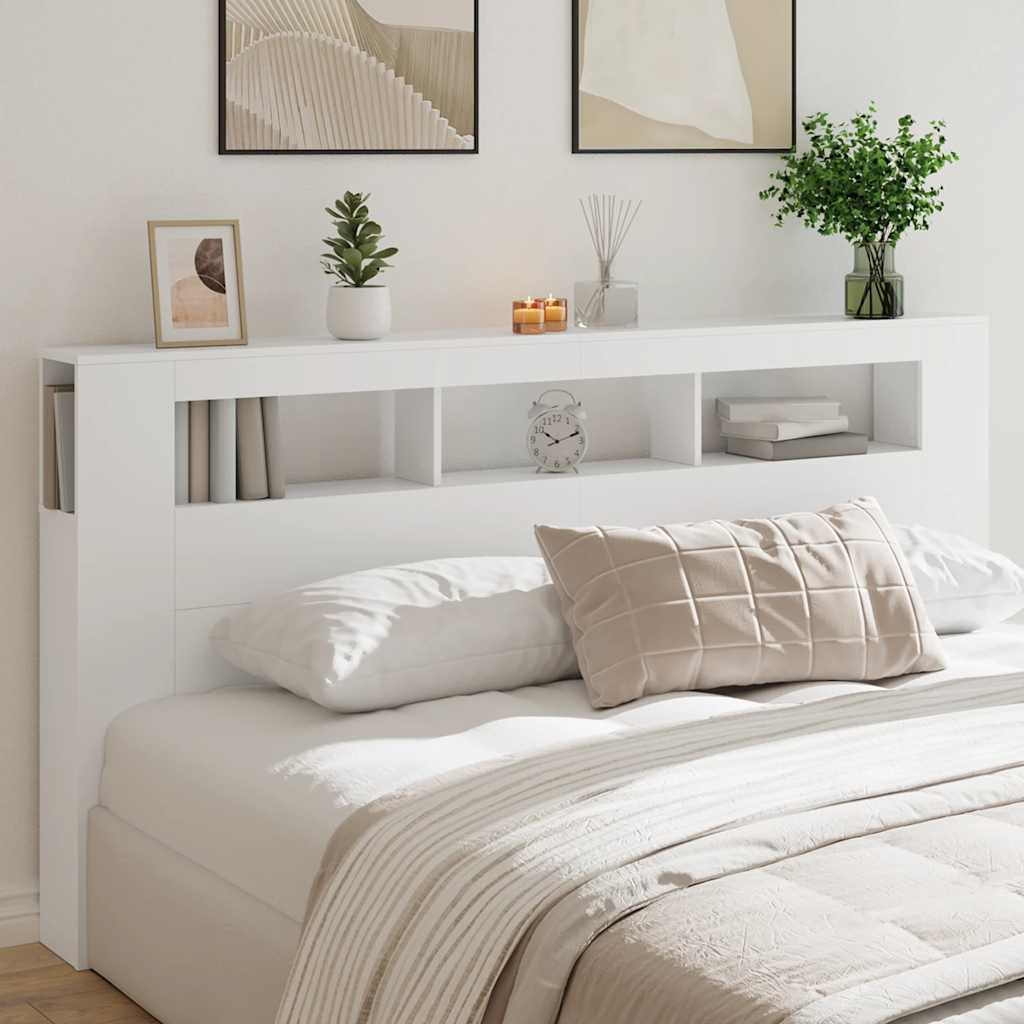 fehér szerelt fa LED-es fejtámla 200 x 18,5 x 103,5 cm