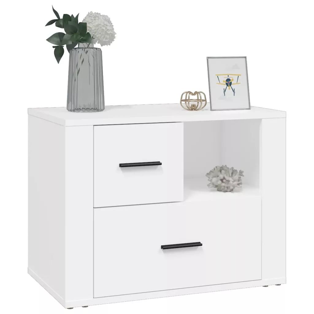 Ez az elegáns és klasszikus kialakítású, divatos éjjeliszekrény szebbé teszi otthonát. Tartós anyag: A szerelt fa kivételes minőségű, sima felületű, szilárd, stabil, és ellenáll a nedvességnek.Bőséges tárolóhely: Az éjjeliszekrény 2 fiókkal és 1 rekesszel rendelkezik, így bőséges helyet biztosít folyóiratai, könyvei, távirányítói és egyéb apró tárgyai kézközelben történő rendezett tárolásához.Masszív felső lap: A masszív lap ideális dísztárgyak, képkeretek és cserepes növények elhelyezésére.Könnyen tisztítható felület: A kisszekrény nedves ruhával könnyen tisztítható.Rugalmas összeszerelés: A felső fiók tetszés szerint bal vagy jobb oldalra is felszerelhető. Megjegyzés:Az egyszerű összeszerelés érdekében minden termékhez mellékelünk összeszerelési útmutatót.
