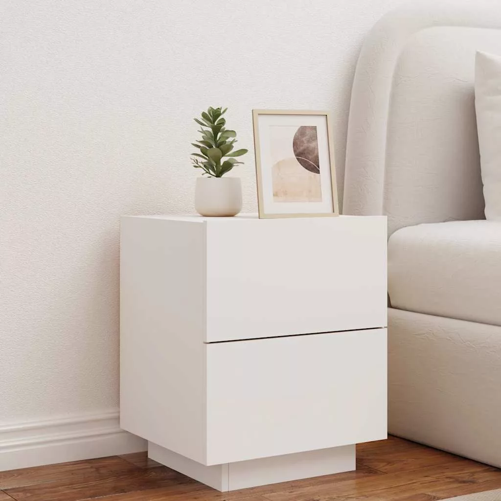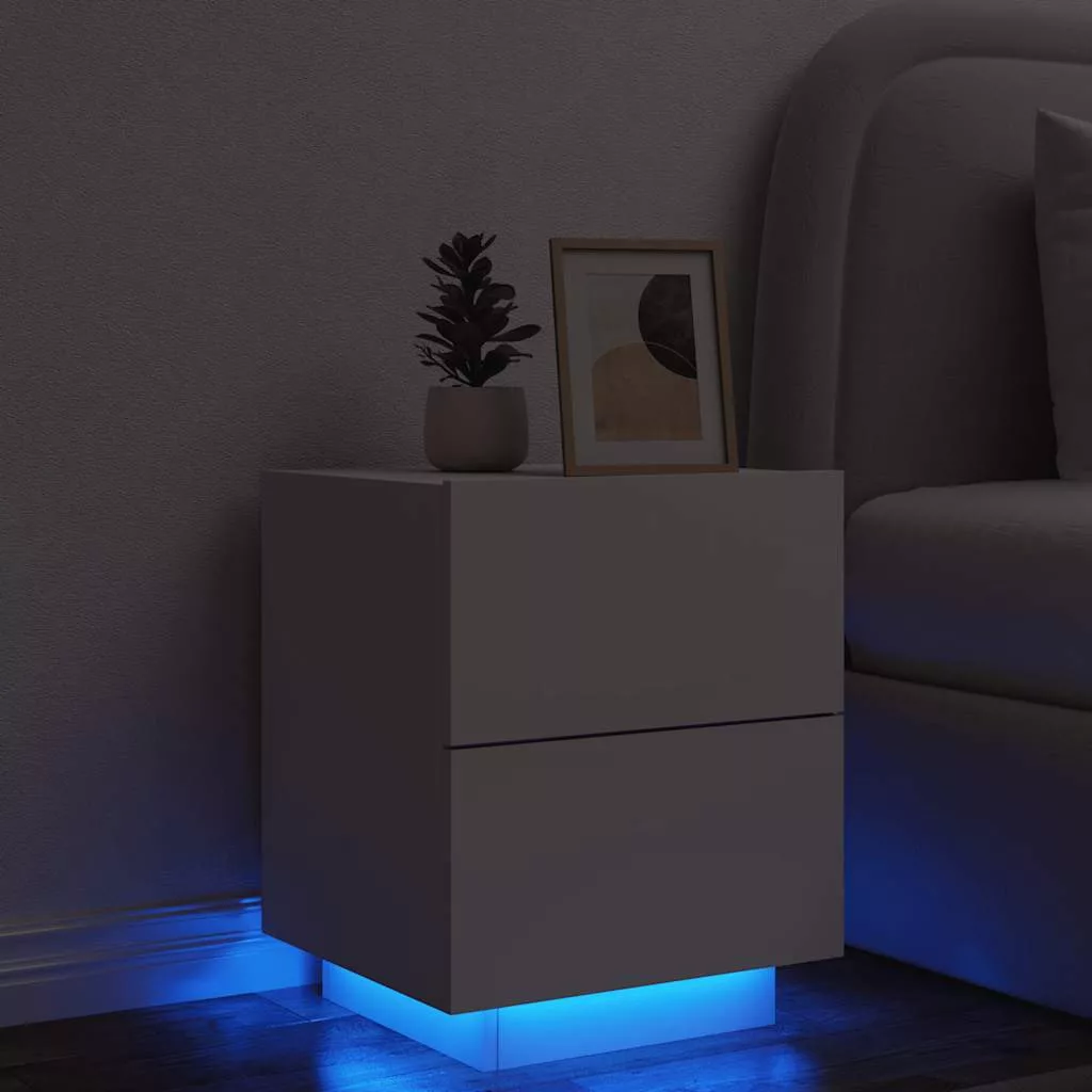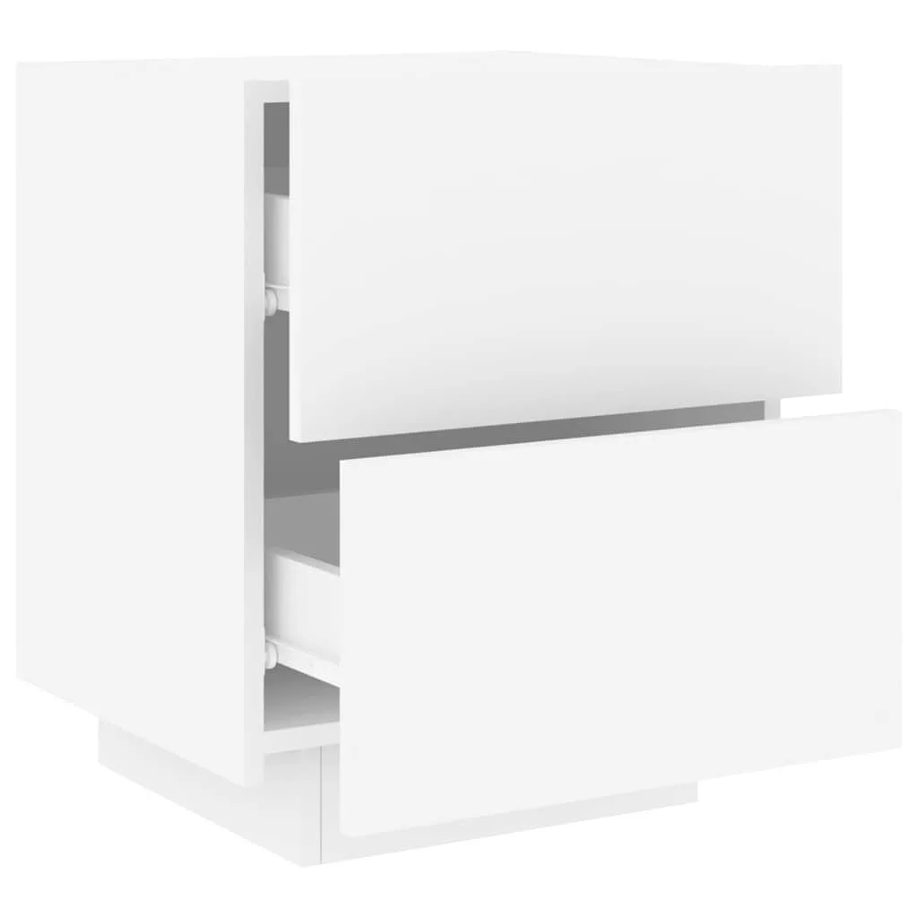 fehér szerelt fa éjjeliszekrény LED-fényekkel