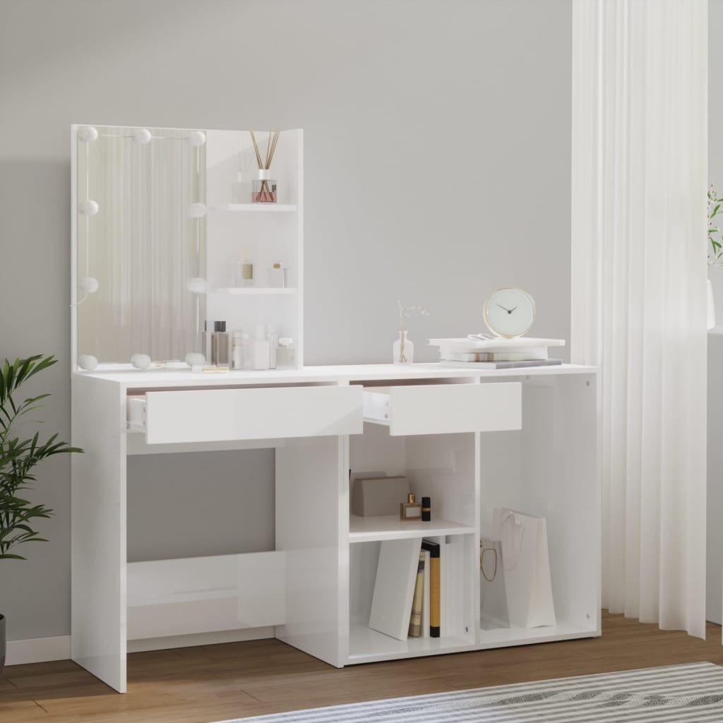 Ez az igazán egyszerű, mégis praktikus, szekrénnyel ellátott LED-es fésülködőasztal tökéletesen illik különböző stílusú terekbe. Tartós anyag: A szekrénnyel ellátott LED-es fésülködőasztal szerelt fából készült. A szerelt fa kivételes minőségű, sima felületű, szilárd, stabil, és ellenáll a nedvességnek.LED-világítás: A pipereasztal USB-s LED-izzókkal van ellátva, amelyek egyszerűen átkapcsolhatók melegről hideg fehér fényre. A tükör körüli LED-izzók az Ön szépségét is megvilágítják.Bőséges tárolóhely: A rekeszekkel rendelkező tárolószekrénnyel ellátott fésülködőasztal bőséges tárolóhelyet biztosít, így tökéletes sminkjei, kiegészítői, táskái és szépségápolási kellékei rendszerezéséhez. Figyelem:A dőlés megakadályozása érdekében a terméket a mellékelt tartóelem segítségével rögzíteni kell a falhoz. Megjegyzés:Az egyszerű összeszerelés érdekében minden termékhez mellékelünk összeszerelési útmutatót. Ne használja ezt az elemet, ha valamelyik alkatrésze eltört, elszakadt vagy hiányzik. Ez a termék DC 5V-ról működik, de a tanúsított 5V-os USB-tápforrást nem tartalmazza. A magasabb feszültség túlmelegedést okozhat, és a készülék károsodását, valamint a túlmelegedés és a tűz lehetséges kockázatát okozhatja.