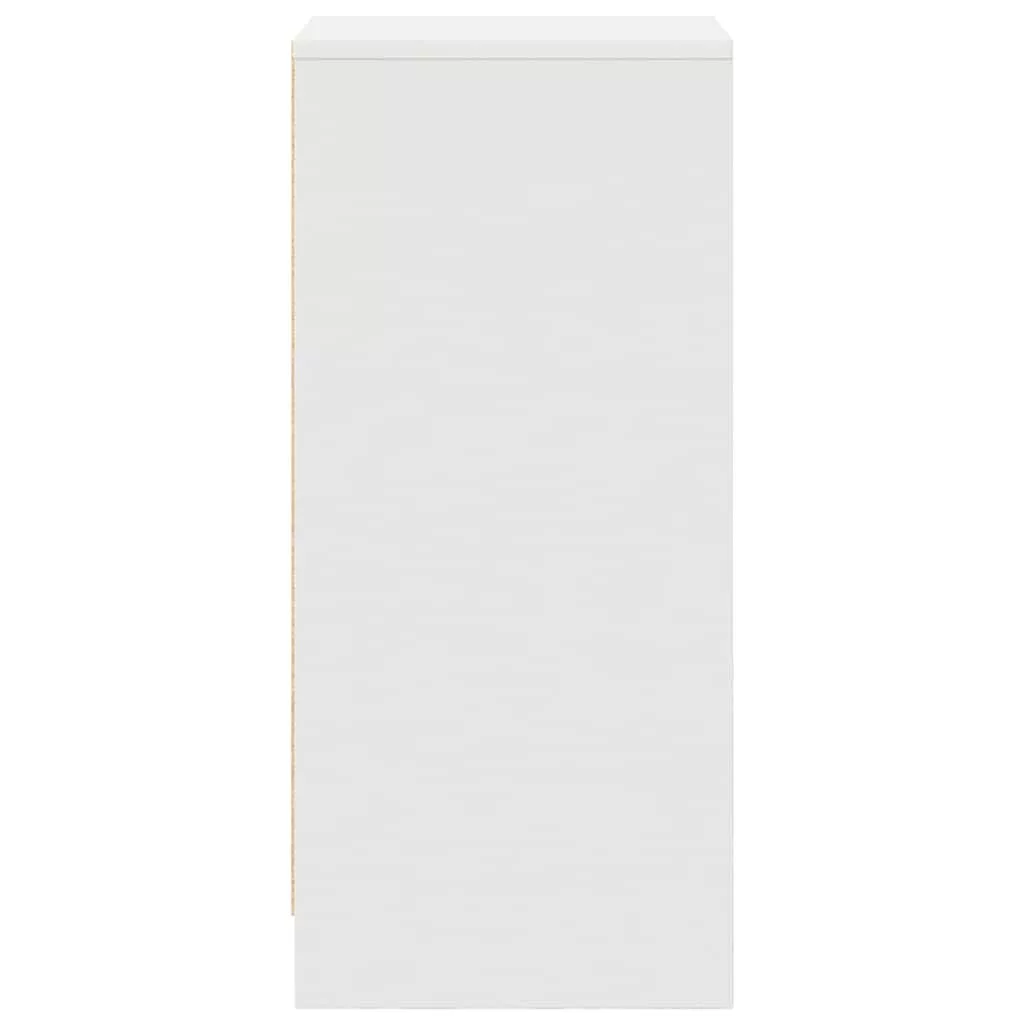 A komód bőséges tárolóhelyet kínál, segít rendet és szervezettséget teremteni a szobában, miközben a praktikumot esztétikummal ötvözi. Stabil és tartós anyag: A szerelt fa tartós és stabil anyag sima felülettel, amely ellenáll a nedvességnek, a vetemedésnek és a hasadásnak, így megbízható választás különféle célokhoz.Bőséges tárolóhely: A büfé bőséges tárolóhelyet kínál az étkezési és egyéb háztartási cikkek számára, hogy azok rendezettek és elérhetőek legyenek.Robusztus asztallap: A tárolószekrény masszív asztallappal rendelkezik, amelyre dísztárgyakat, fotóalbumokat, vagy kis növényeket helyezhet.Széleskörű felhasználás: Ezt a tálalószekrényt fürdőszoba- vagy konyhaszekrényként, illetve elegáns tárolószekrényként hálószobákban, mosdókban, előszobákban, folyosókon, irodákban, étkezőkben és egyéb helyiségekben.Könnyen karbantartható: Sima felületének köszönhetően a szekrény nedves ruhával könnyen tisztítható, és kevesebb gondozást igényel. Figyelem:A felborulás elkerülése érdekében ezt a terméket a mellékelt fali rögzítőeszközzel kell használni.