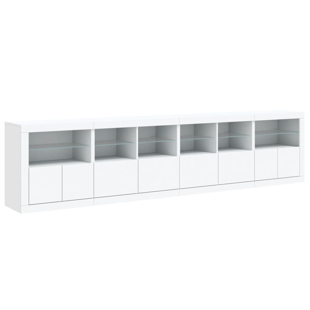 fehér tálalószekrény LED-világítással 283x37x67 cm