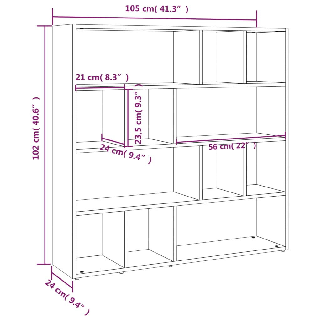 fehér térelválasztó könyvszekrény 105 x 24 x 102 cm