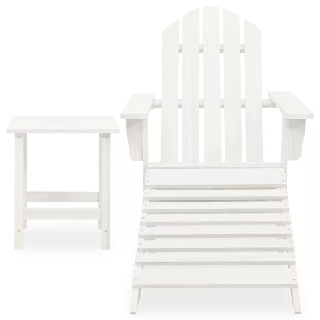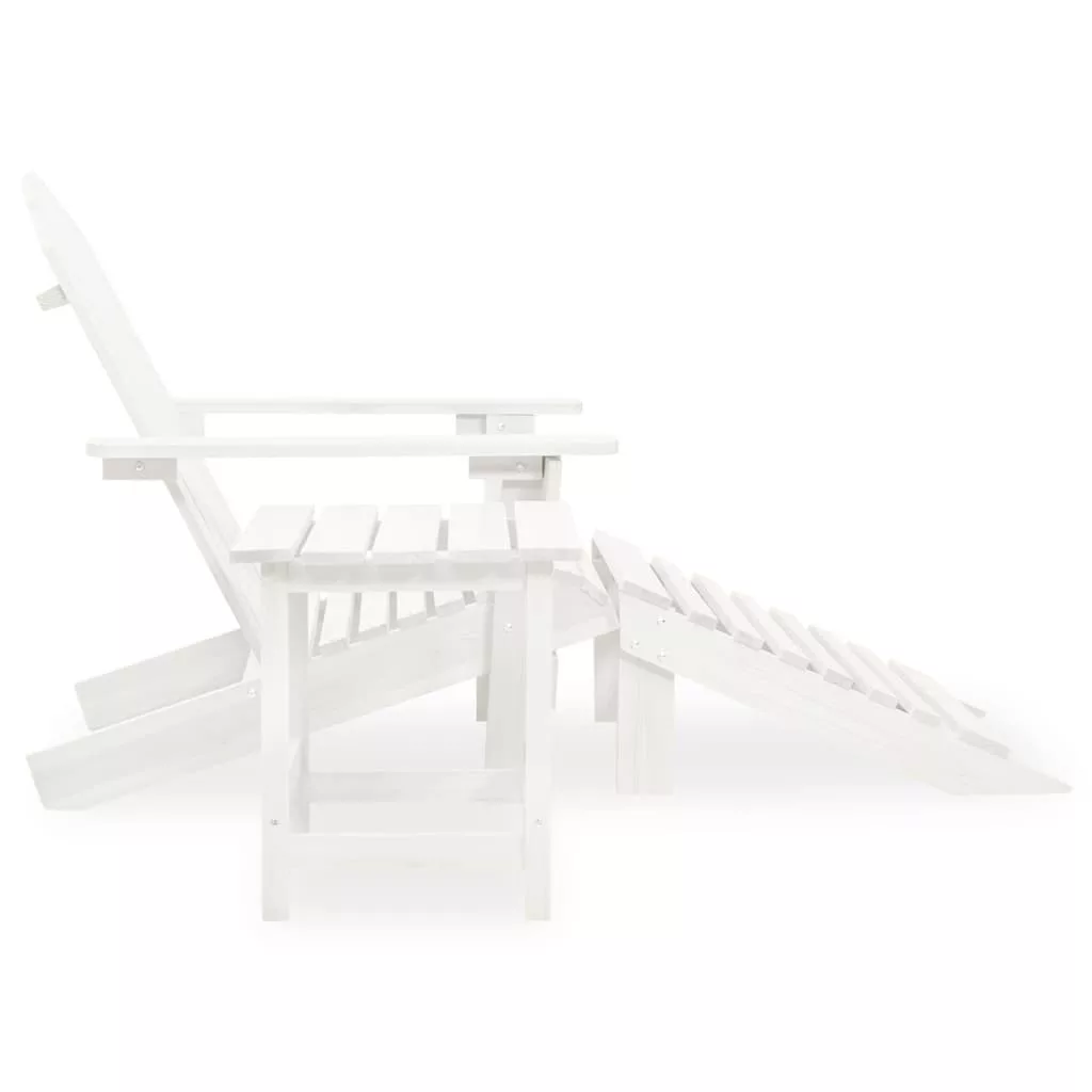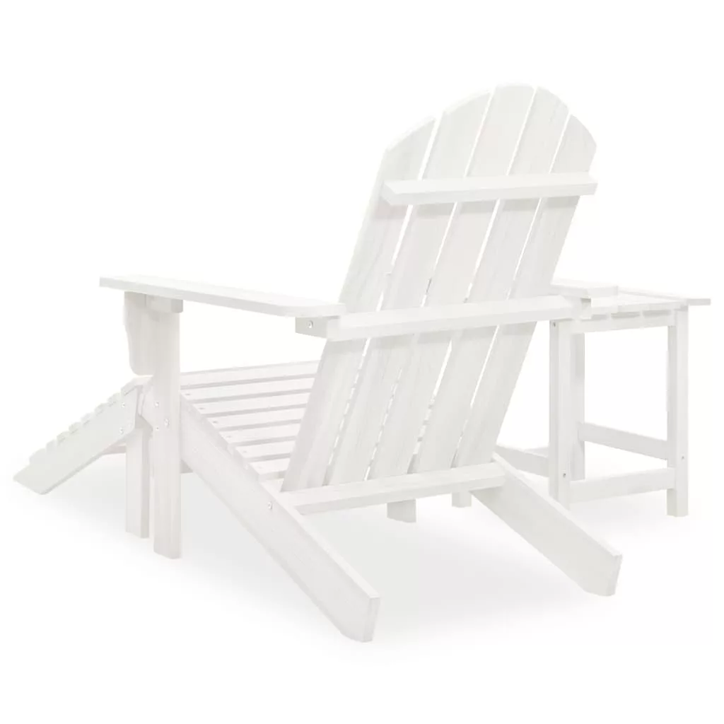 Pihenje ki magát a kertben vagy a teraszon ebben a divatos és kényelmes, lábtartóval és asztallal ellátott adirondack székben! Ez a lábtartóval és asztallal ellátott kerti szék, tömör fenyőfából készült, masszív vázzal rendelkezik és stabil, így könnyen karbantartható és időjárásálló. Az asztalra telefont, napszemüveget, italt és egyéb apró tárgyakat helyezhet. Az ergonomikus kialakítású szerkezet optimális kényelmet is biztosít. Emellett a lábának extra támaszt nyújtó lábtartó levehető. Elegáns és időtálló kialakításával kültéri környezete praktikus és klasszikus kiegészítője lesz. Figyelem: Kültéri bútora élettartamának meghosszabbítása érdekében javasoljuk, hogy tisztítsa rendszeresen, és ne hagyja feleslegesen a szabadban, védelem nélkül.Tisztítás: Használjon enyhe szappanoldatot.Tárolás: Ha lehetséges, tárolja zárt, hűvös, száraz helyen. Ha a terméket a szabadban tárolja, védje vízálló burkolattal. Eső vagy havazás után törölje le és szárítsa fel a felesleges vizet vagy havat a sík felületekről. Hagyjon elegendő légkeringést a nedvességből eredő károk elkerülése érdekében.