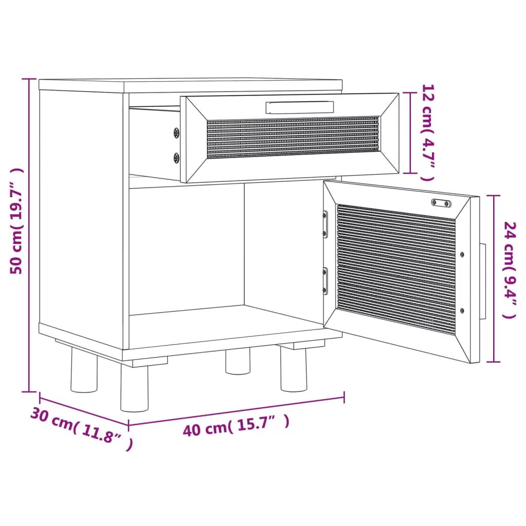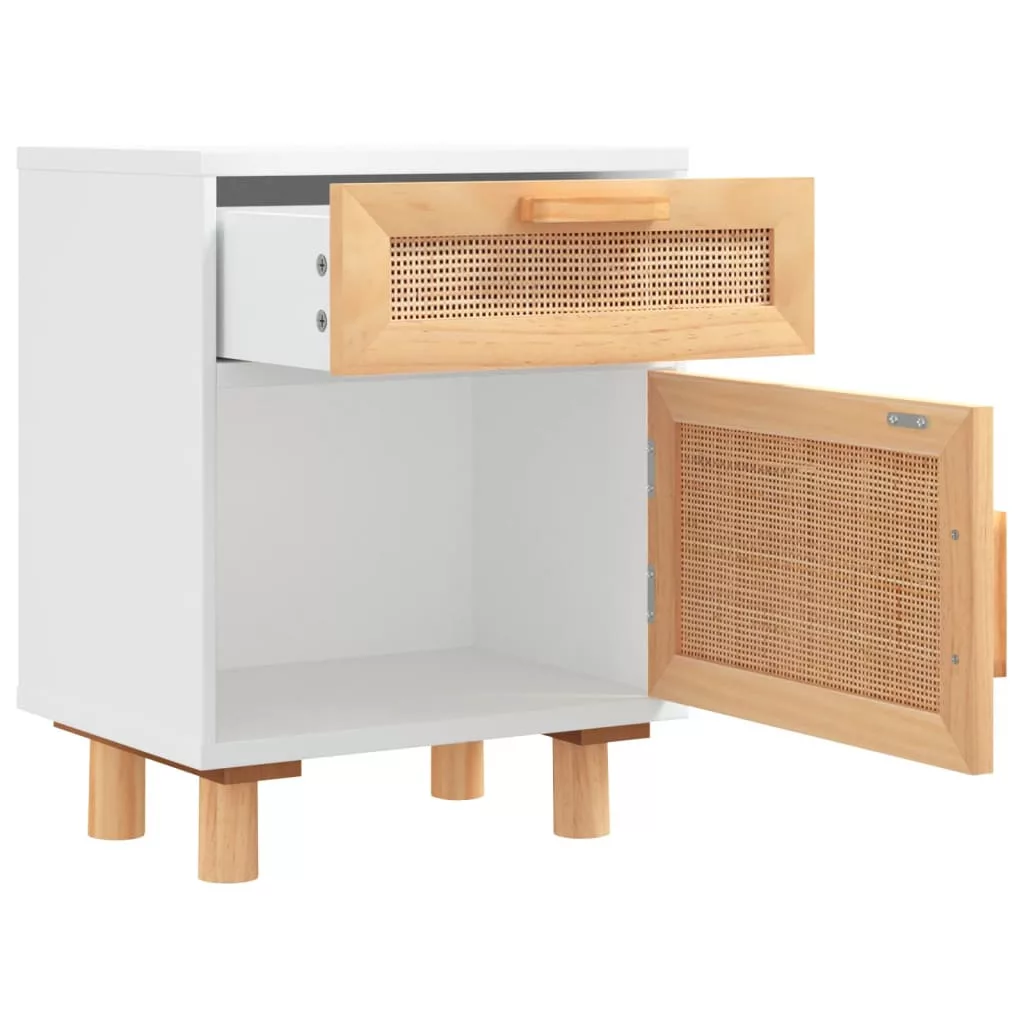 fehér tömör fenyőfa és természetes rattan éjjeliszekrény