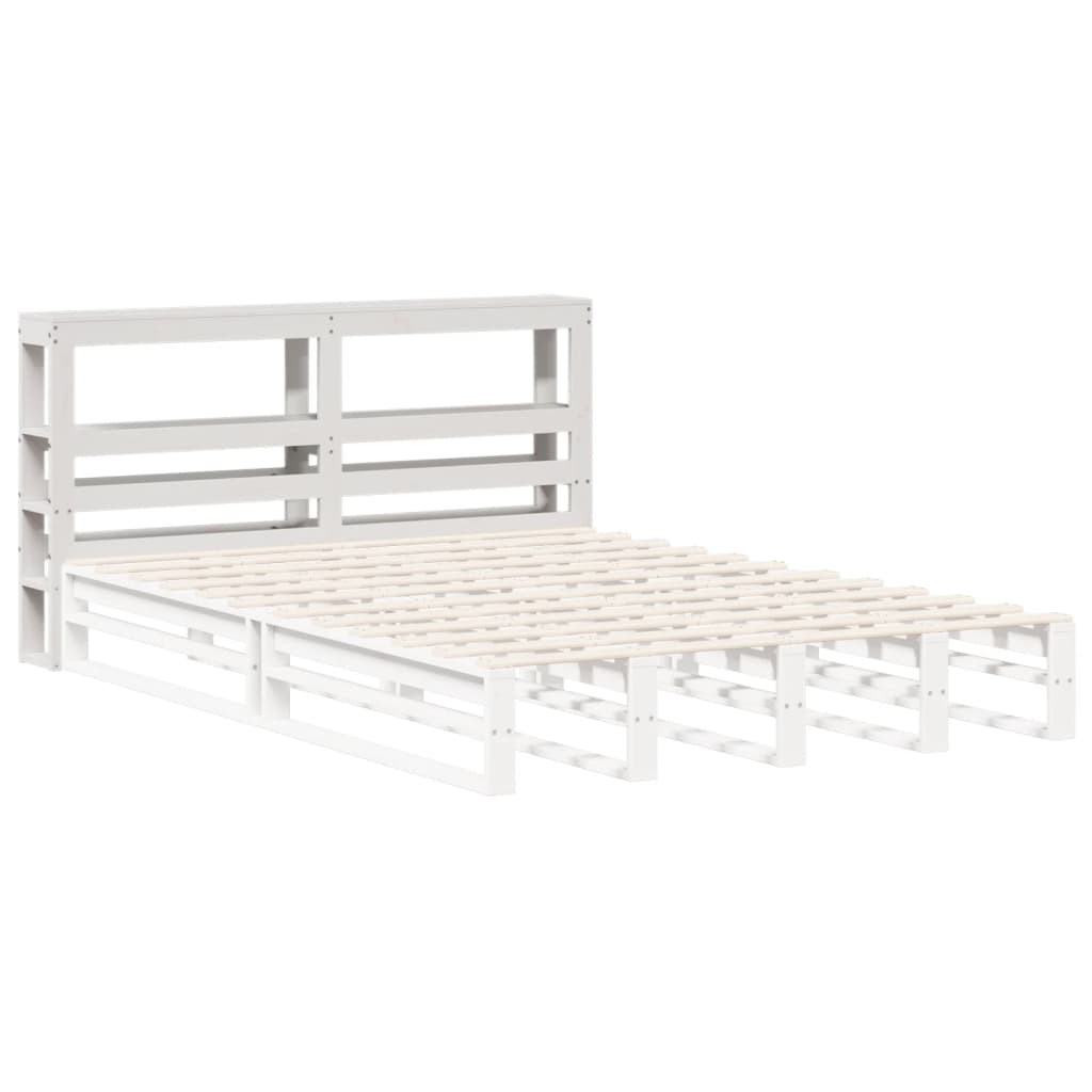 fehér tömör fenyőfa fejtámla polcokkal 120 cm