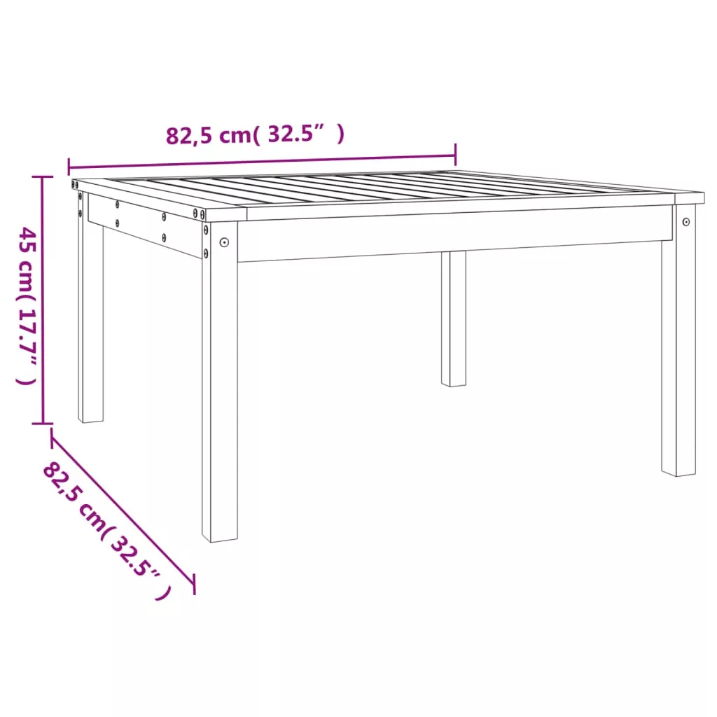 fehér tömör fenyőfa kerti asztal 82,5x82,5x45 cm