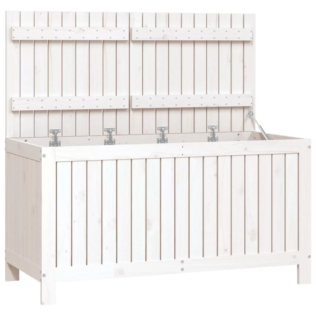 fehér tömör fenyőfa kerti tárolóláda 121x55x64 cm