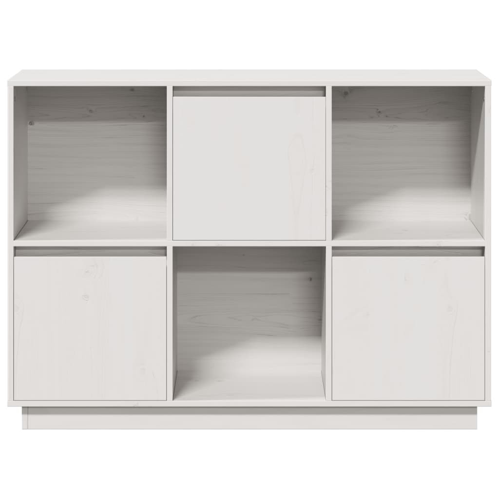 Varázsolja rendezetté nappaliját ezzel az elegáns tálalószekrénnyel! Ez a praktikus fa tálalószekrény elegendő tárolóhelyet biztosít, és a helyiség ideális kiegészítője lesz. Tömör fenyőfa: A tömör fenyőfa egy gyönyörű természetes anyag. A fenyőfa erezete egyenes, a csomók adják az anyag jellegzetes, rusztikus megjelenését.Bőséges tárolóhely: A 3 ajtós és 3 nyitott rekesszel felszerelt szekrény bőséges tárolóhelyet kínál alapvető kellékei kézközelben történő rendezett tárolásához.Modern stílus: A kisszekrény modern stílust visz otthonába. A modern kialakítás letisztult vonalakkal és minimalista megjelenéssel járul hozzá a belső térhez. Figyelem:A dőlés megakadályozása érdekében a bútort a mellékelt tartóelem segítségével a falhoz kell rögzíteni.