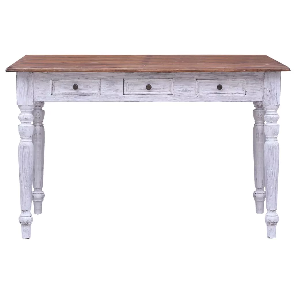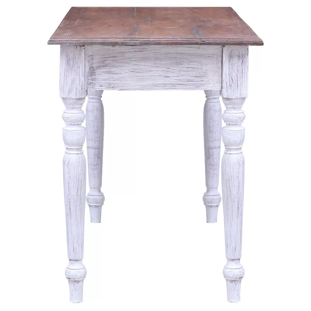 Ez a 3 fiókkal felszerelt, fából készült íróasztal rusztikus bájt áraszt, és stílusos és praktikus kiegészítője lesz minden dekorációnak. Előszoba asztalként vagy konzolasztalként is használható. Ez a tömör mahagóni fából készült, tömör fa íróasztal rendkívül tartós és masszív. A mahagóni egy trópusi keményfa, amely szépségével, tartósságával, és színével tűnik ki. A különleges kézműves munkának köszönhetően ez a termék vintage, hangulatos, és hiteles megjelenéssel rendelkezik. A hiteles érték mögött szögeket, csavarokat, üregeket és egyéb hiányosságokat találhat. Ezek a tökéletlenségek a múltjával osztoznak, és nem szándékosan készültek. Ezenkívül az íróasztal tárolóhellyel rendelkezik, hogy a fontos tárgyakat rendezve és elérhető helyen tartsa. A termék összeszerelése egyszerű.