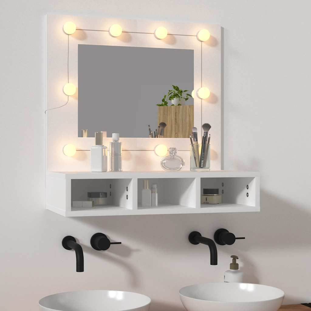 Varázsoljon kellemes, esztétikus megjelenést szobájába ezzel a LED-es tükrös szekrénnyel! Tartós anyag: A szerelt fa kivételes minőségű, sima felületű, szilárd, stabil, és ellenáll a nedvességnek.LED-világítás: A tükrös szekrény USB-s LED-izzókkal van ellátva, amelyek egyszerűen átkapcsolhatók melegről hideg fehér fényre. A tükör körüli LED-izzók az Ön szépségét is megvilágítják.Különféle elhelyezési lehetőségek: Ez a LED-es tükrös szekrény elhelyezhető a ruhásszekrényen, de a helytakarékosság érdekében a falra is szerelhető.Elegendő tárolóhely: A nyitott polcok elrendezésének köszönhetően bőséges tárolóhely áll rendelkezésre a különféle kozmetikai kellékek számára. Megjegyzés:Az egyszerű összeszerelés érdekében minden termékhez mellékelünk összeszerelési útmutatót.A falon belüli csavar(ok) és dugó(k) nem alaptartozékok. Keressen és használjon a falának megfelelő csavar(oka)t és dugó(ka)t. Ha bizonytalan, kérje szakember tanácsát. Gondosan olvassa el és kövesse a használati utasítás minden lépését. Ne használja ezt az elemet, ha valamelyik alkatrésze eltört, elszakadt vagy hiányzik. Ez a termék DC 5V-ról működik, de a tanúsított 5V-os USB-tápforrást nem tartalmazza. A magasabb feszültség túlmelegedést okozhat, ami a készülék károsodását, valamint a túlmelegedés és a tűz esetleges kockázatát okozhatja.