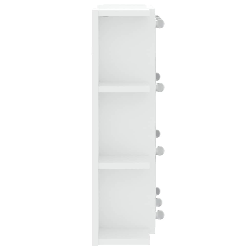 Tárolja fontos sminkkellékeit rendezetten ebben a divatos LED-es tükrös szekrényben! Tartós anyag: A szerelt fa kivételes minőségű, sima felületű, szilárd, stabil, és ellenáll a nedvességnek. A szerelt fából készült LED-es tükrös szekrény könnyen tisztítható.Hasznos tükör: A gyönyörű tükör segít a sminkelésben, és elegánsabbá teszi a tükrös fürdőszobaszekrényt.LED-világítás: A faliszekrény USB-s LED-izzókkal van ellátva a kényelmes használat érdekében.Bőséges tárolóhely: Ez a tükrös szekrény rekeszekkel rendelkezik, amelyekben rendezetten tárolhatja különféle kellékei. Megjegyzés:Az egyszerű összeszerelés érdekében minden termékhez mellékelünk összeszerelési útmutatót.A falon belüli csavar(ok) és dugó(k) nem alaptartozékok. Keressen és használjon a falának megfelelő csavar(oka)t és dugó(ka)t. Ha bizonytalan, kérje szakember tanácsát. Gondosan olvassa el és kövesse a használati utasítás minden lépését. Ne használja ezt az elemet, ha valamelyik alkatrésze eltört, elszakadt vagy hiányzik. Ez a termék DC 5V-ról működik, de a tanúsított 5V-os USB-tápforrást nem tartalmazza. A magasabb feszültség túlmelegedést okozhat, ami a készülék károsodását, valamint a túlmelegedés és a tűz esetleges kockázatát okozhatja.
