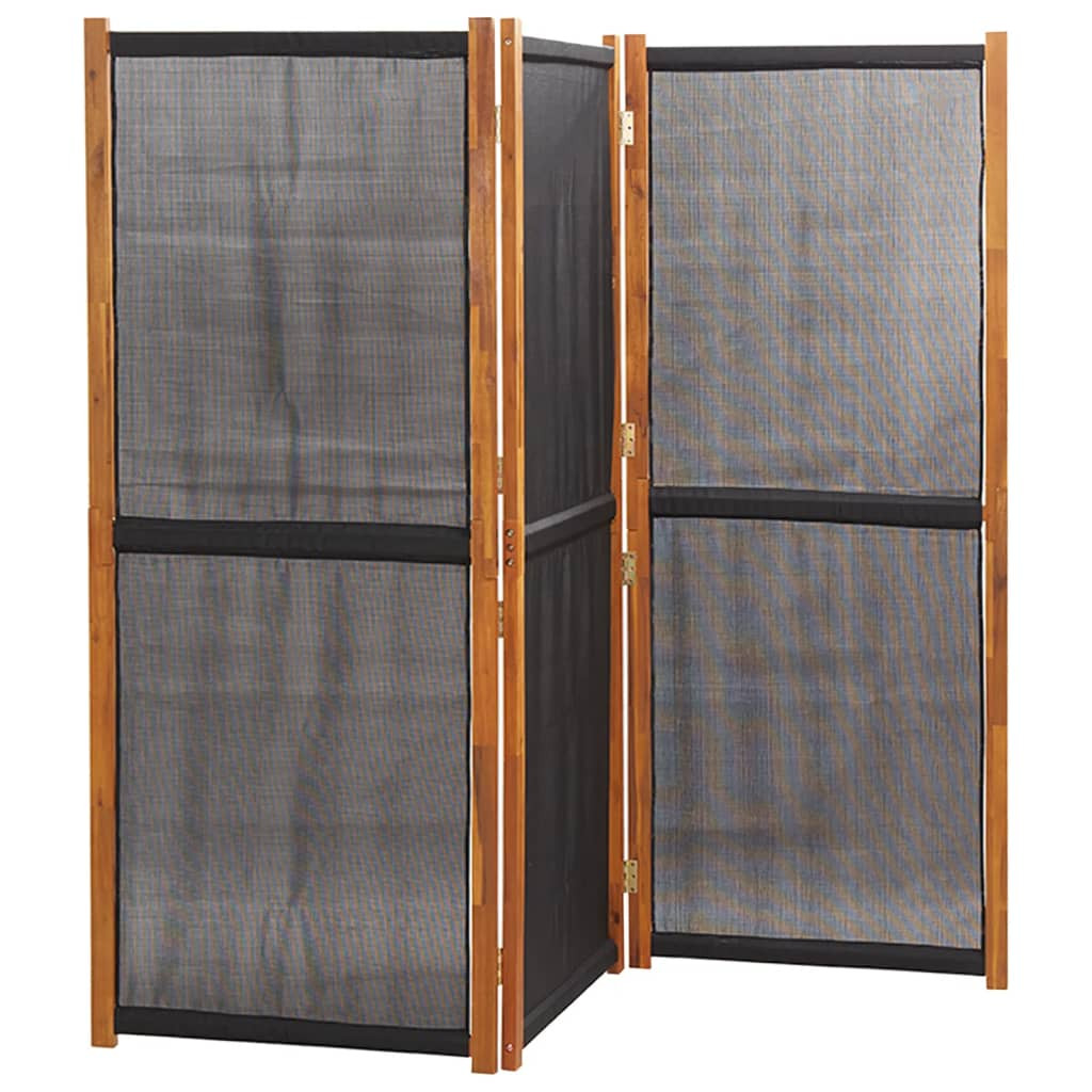 Ez a térelválasztó tökéletes egy szeparált, privát terület vagy rész kialakításához bel- vagy kültéri környezetében. Prémium minőségű anyag: A tömör akácfa egy gyönyörű természetes anyag. Az akácfa egy trópusi keményfa, amely sűrű erezetű, masszív és tartós. Az erős textilén időjárásálló és könnyen tisztítható is.Összehajtható kialakítás: Ez a többpaneles paraván a helytakarékosság érdekében használaton kívül könnyen összehajtható.Multifunkciós: Ez a szobaparaván dekorációként és térelválasztóként is használható. Tökéletes egy terület leválasztására privát szféra létrehozásához vagy egy extra helyiség kialakításához.