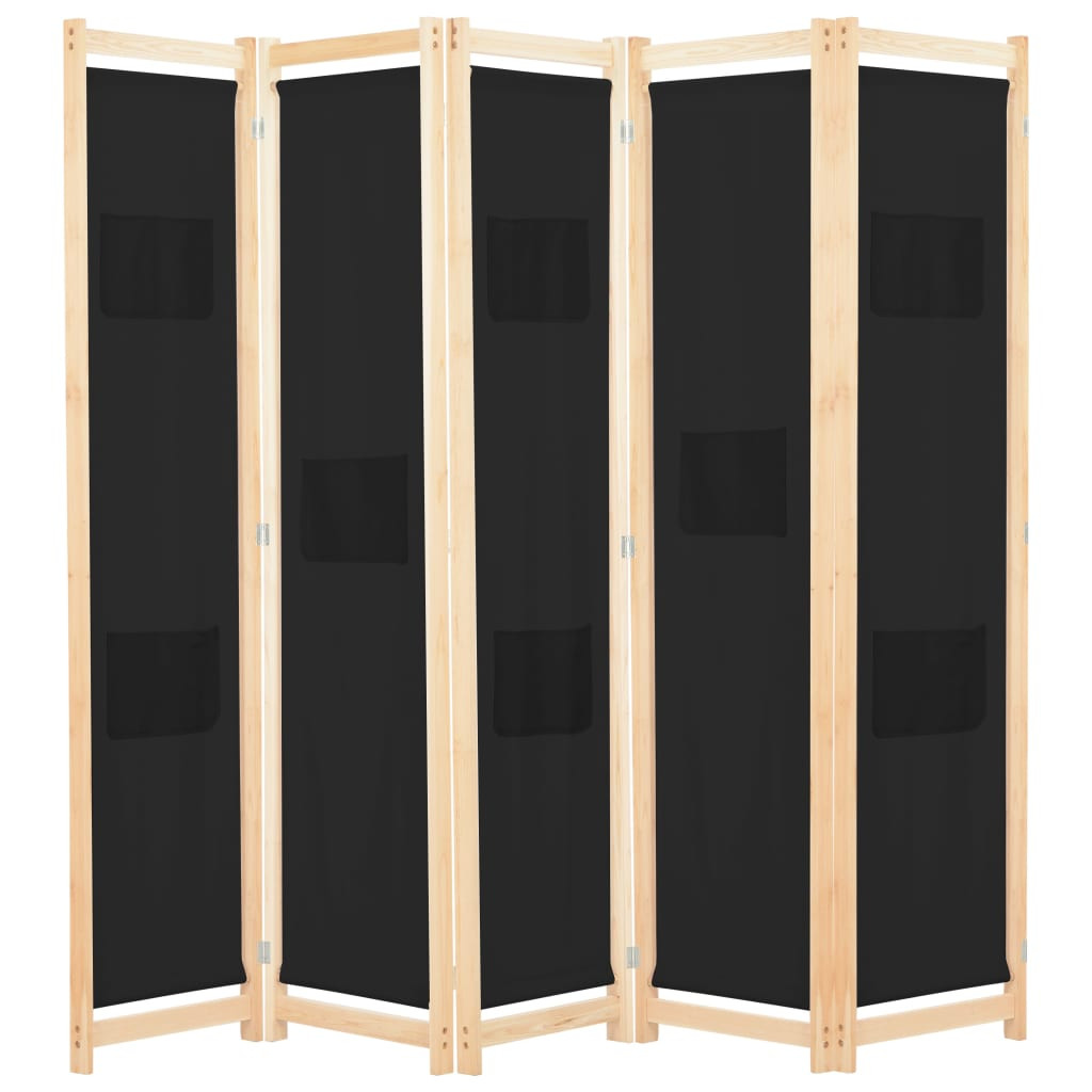 fekete 5-paneles szövetparaván 200 x 170 x 4 cm