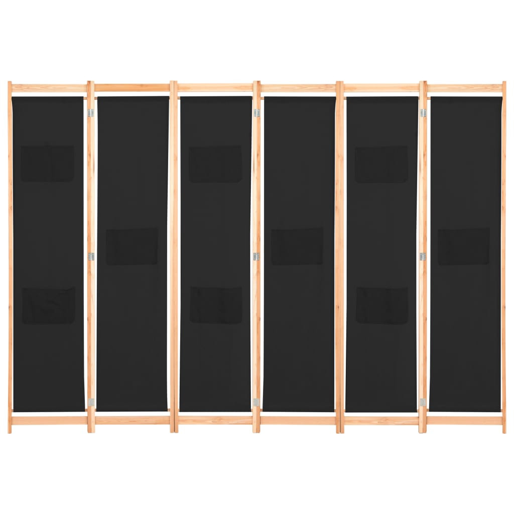 fekete 6-paneles szövetparaván 240 x 170 x 4 cm