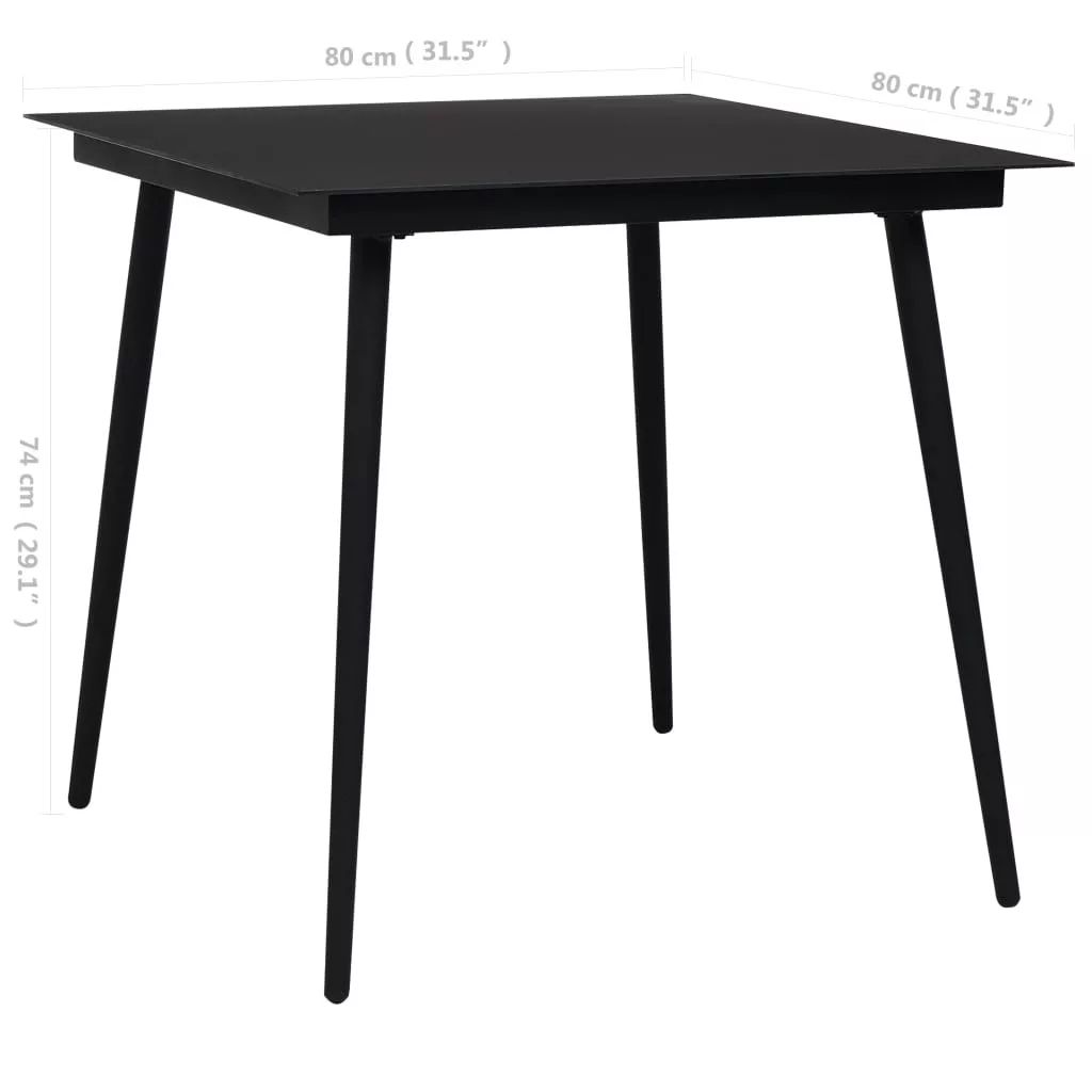fekete acél és üveg kerti étkezőasztal 80 x 80 x 74 cm