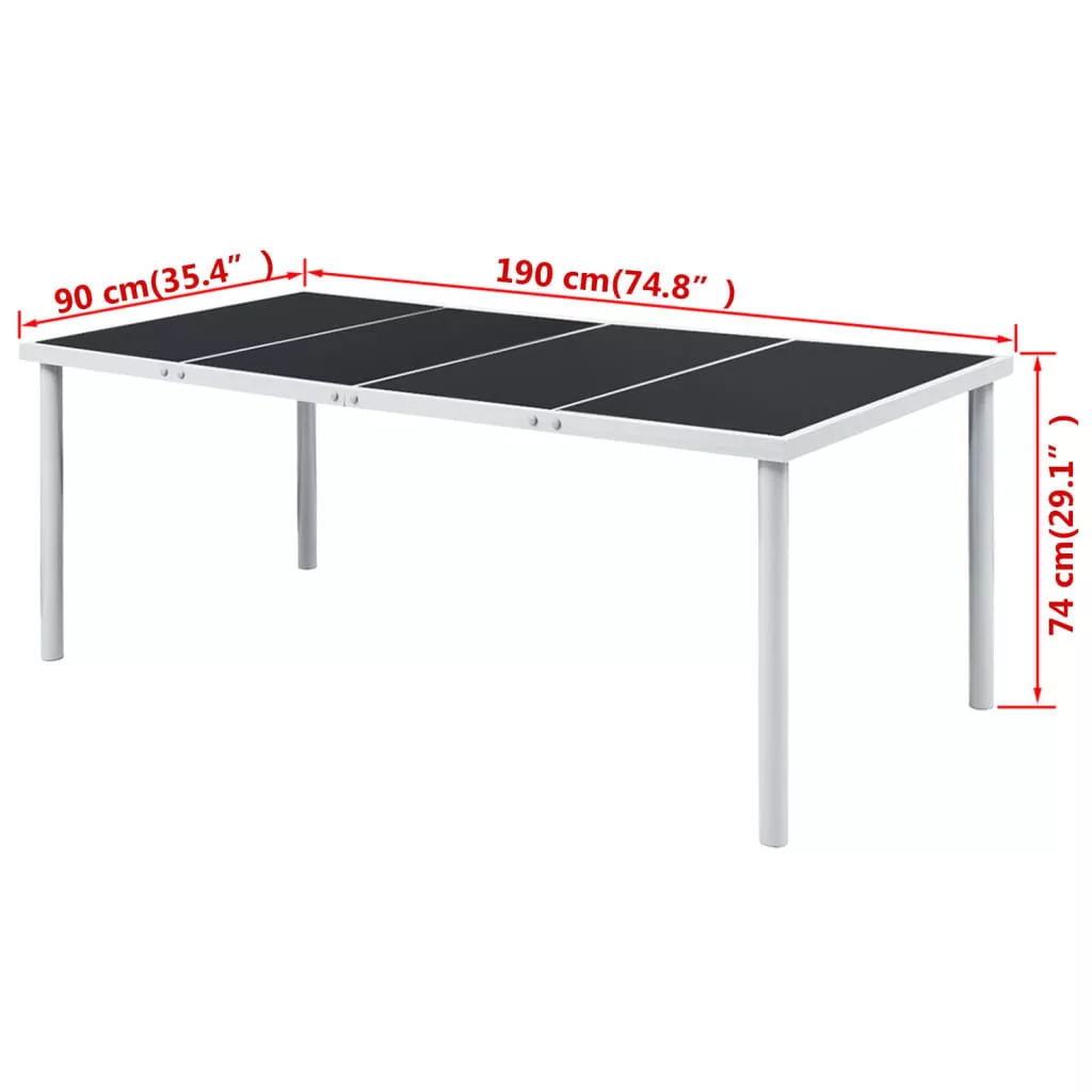 fekete acél kerti asztal 190 x 90 x 74 cm