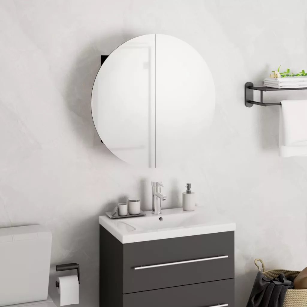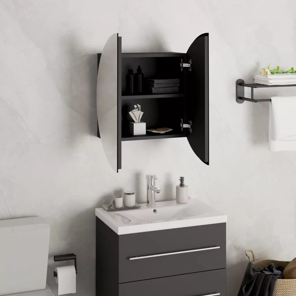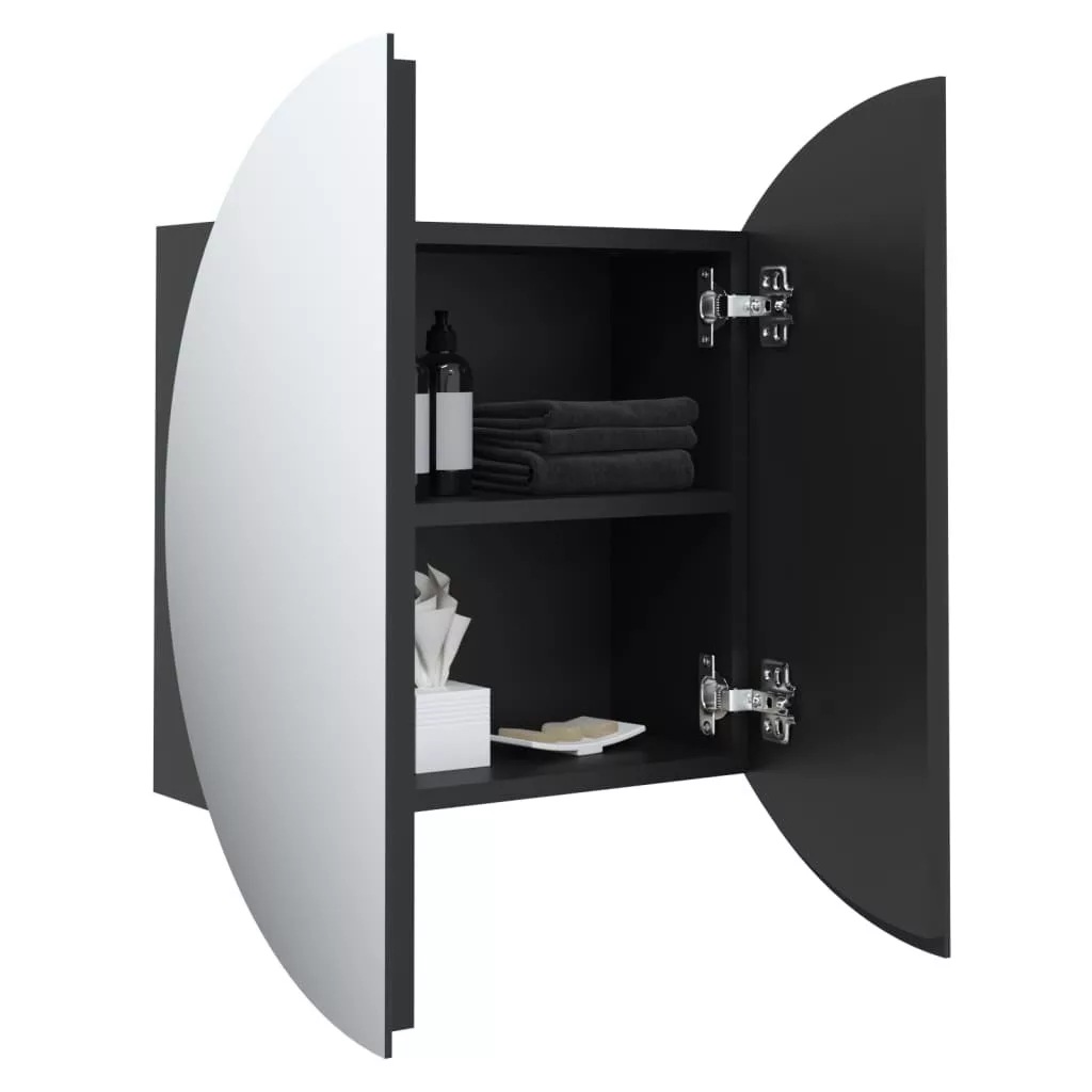 fekete fürdőszobaszekrény kerek tükörrel/LED-del 40x40x17,5 cm