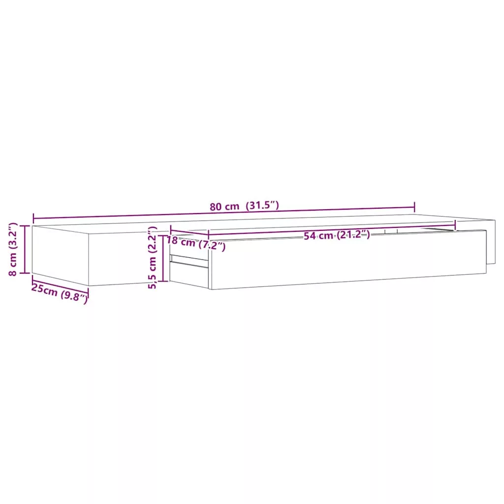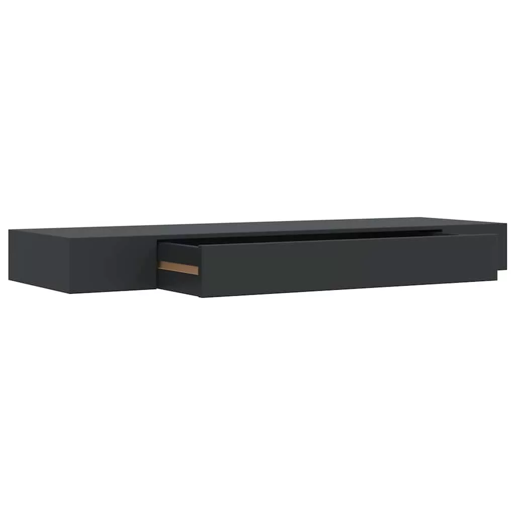 fekete lebegő fali polc fiókkal 80 x 25 x 8 cm