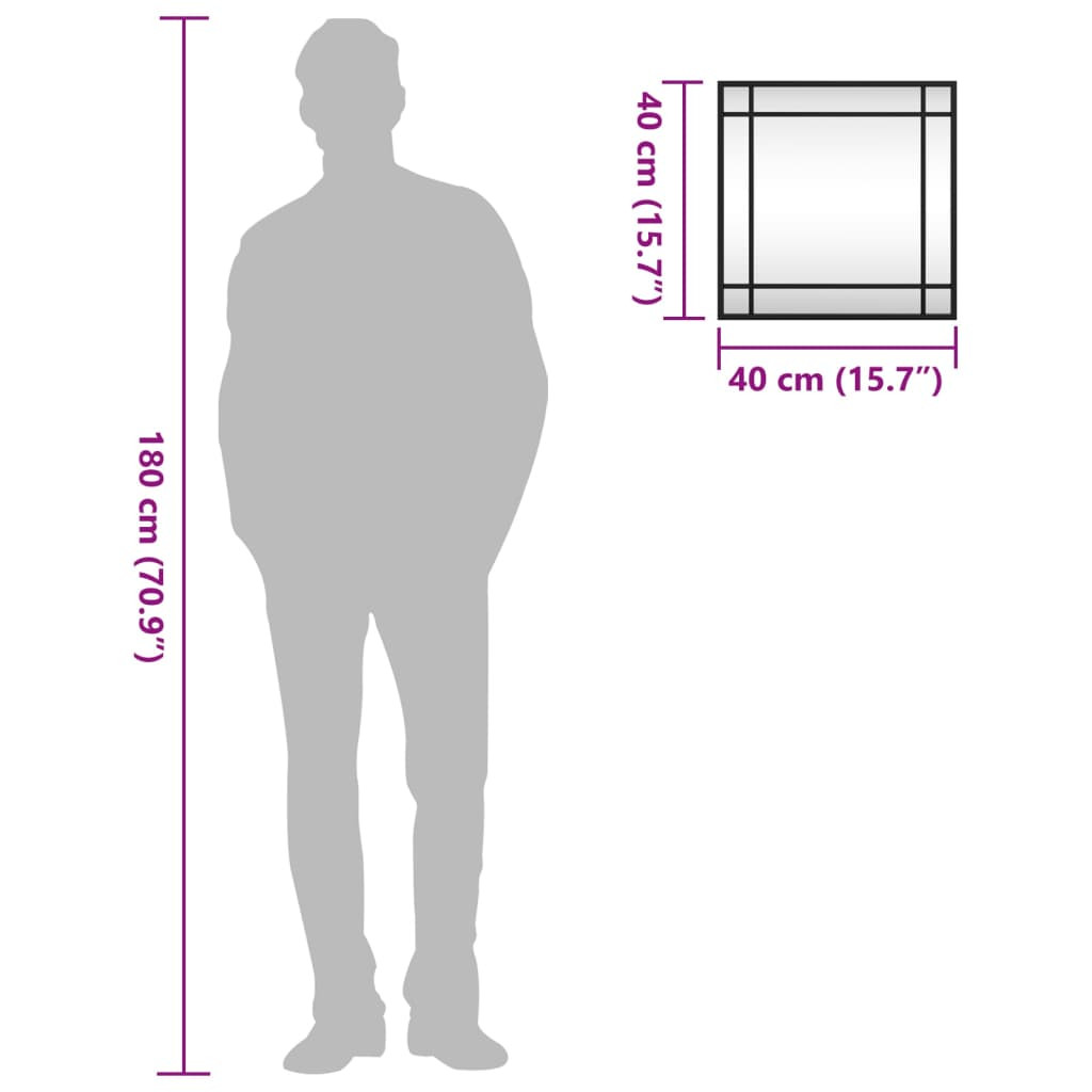 fekete négyzet alakú vas fali tükör 40 x 40 cm