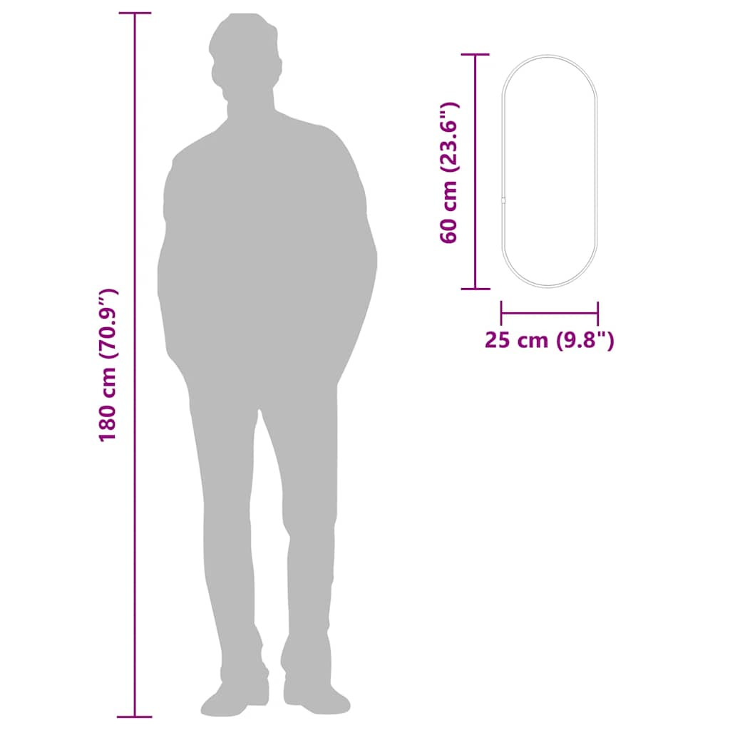 fekete ovális falitükör 60x25 cm