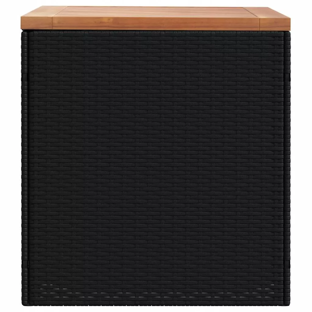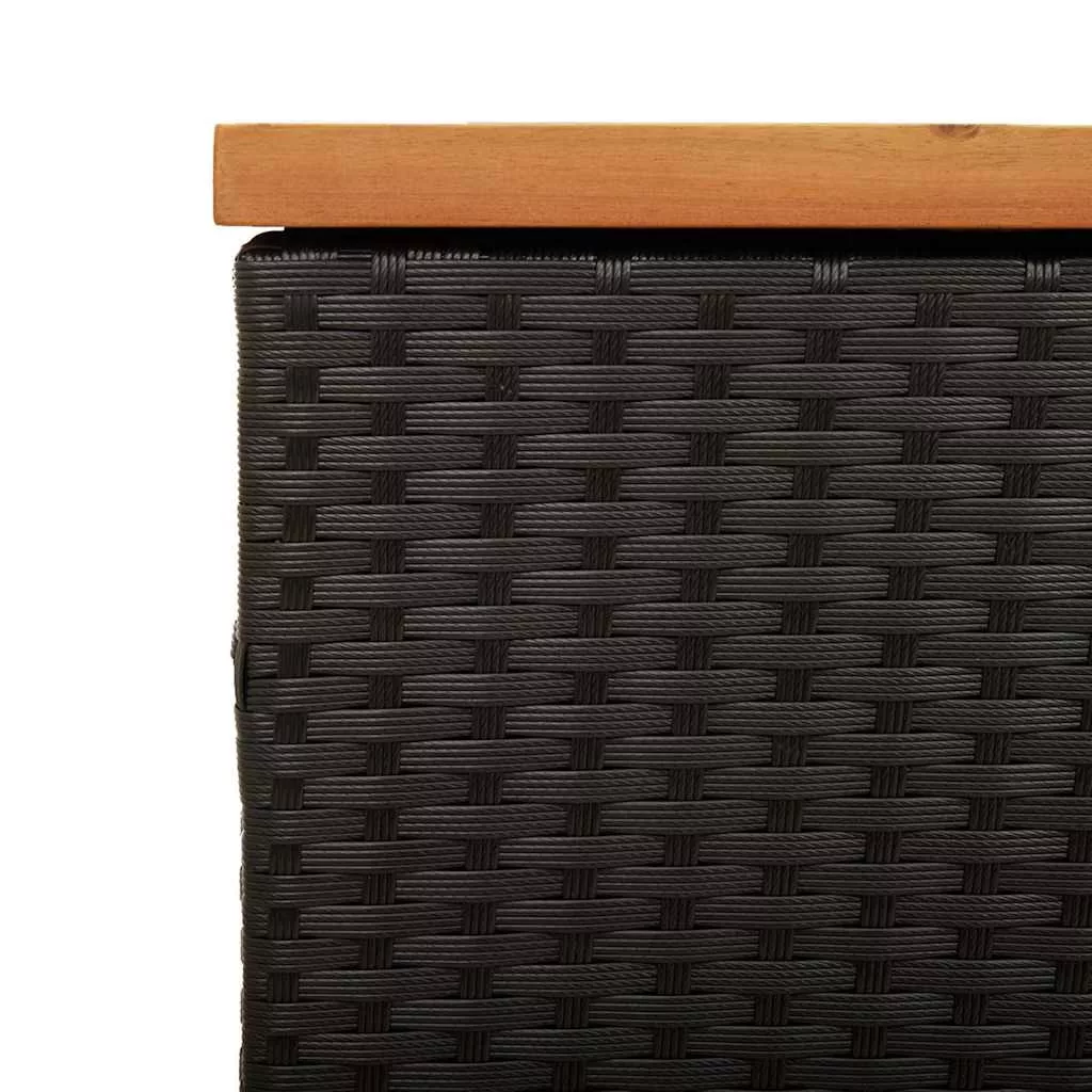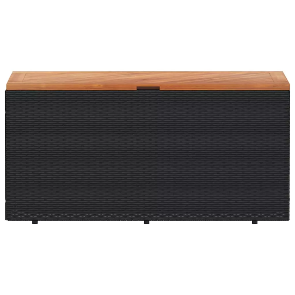 fekete polyrattan és akácfa kerti tárolóláda 110 x 50 x 54 cm