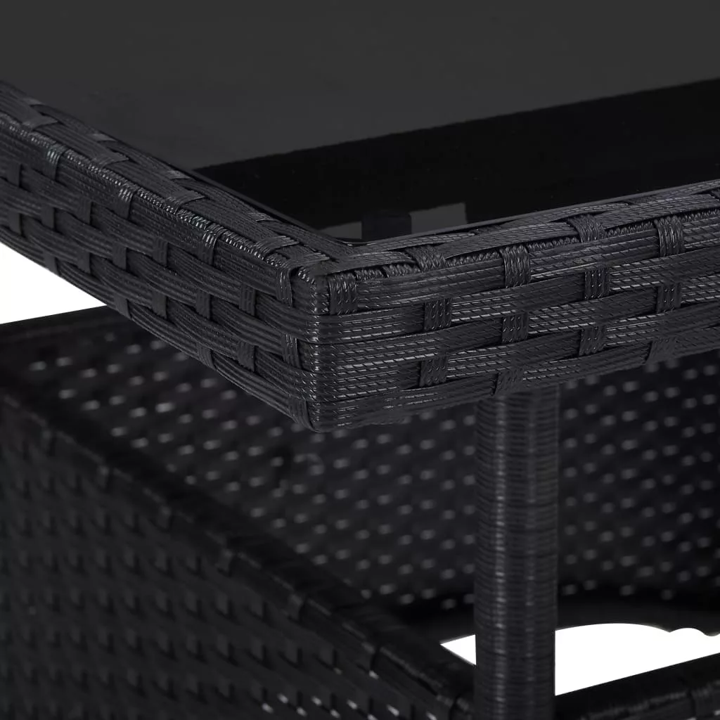 Dobja fel kertje vagy verandája hangulatát ezzel a hívogató kültéri étkezőasztallal! Tökéletesen kielégíti vendégei igényeit, valamint remek helyet kínál a szabadban való étkezéshez. Fogyassza el vacsoráját a csillagos ég alatt, vagy ebédeljen napsütésben a verandán étkezőasztalunknál ülve. Akár 4 ember is elfér körülötte. Az asztal porszórt acélvázzal és időjárás-, valamint UV-álló PE rattanból készült, így hosszú éveken át használható a szabadban. A megerősített biztonsági üvegből készült asztallap erős támasztékot nyújt, valamint könnyen karbantartható és tisztítható. A könnyű rattanszerkezetnek köszönhetően az asztal egyszerűen mozgatható és áthelyezhető. Fontos megjegyzés: Az élettartam növelése érdekében javasolt letakarni az asztalt eső, hó, fagy vagy egyéb zord időjárási körülmény esetén.