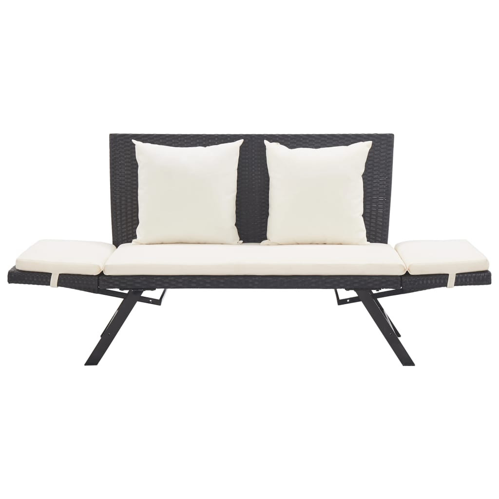 fekete polyrattan kerti pad párnákkal 176 cm