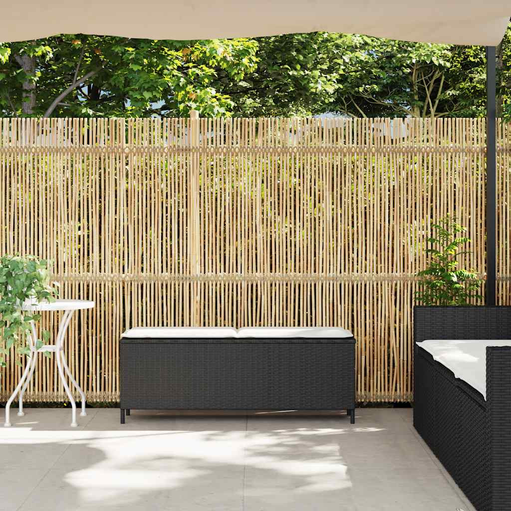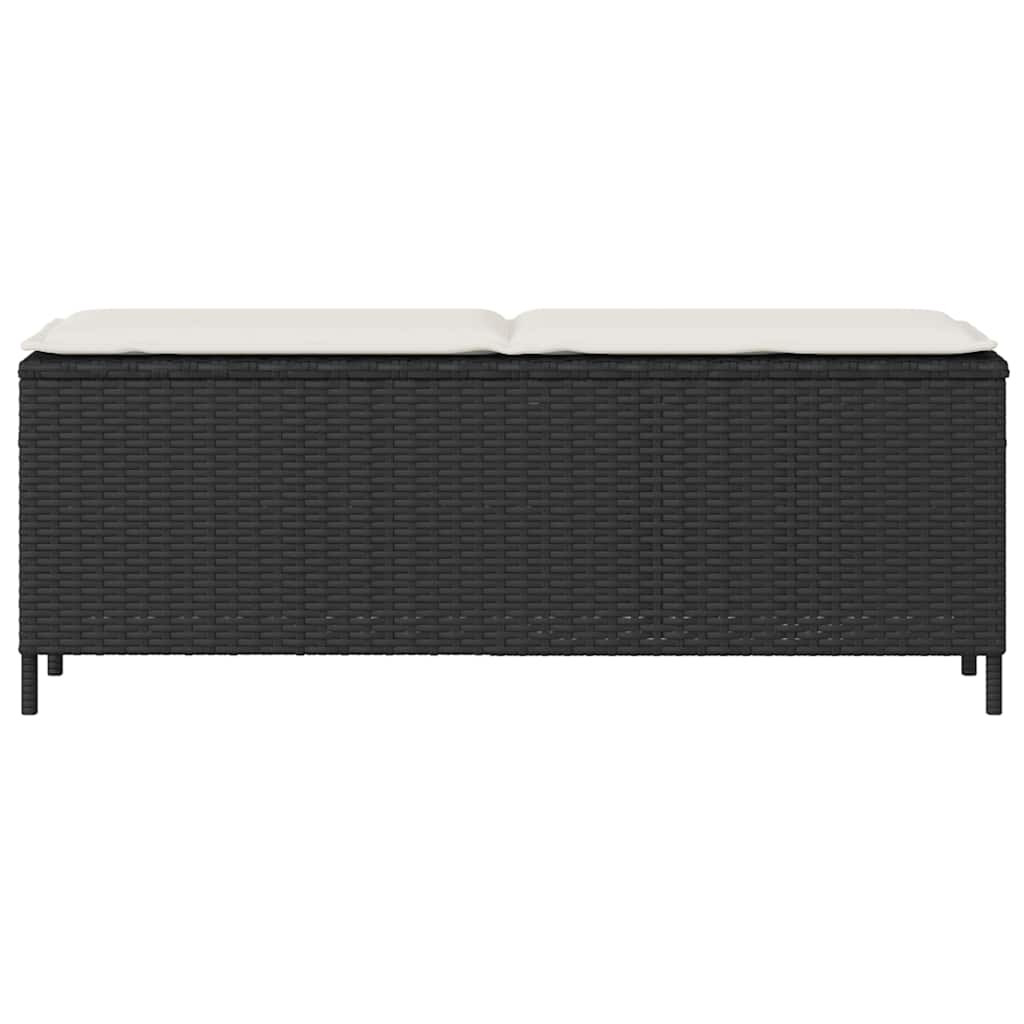 fekete polyrattan kerti pad párnával 110x30x40,5 cm