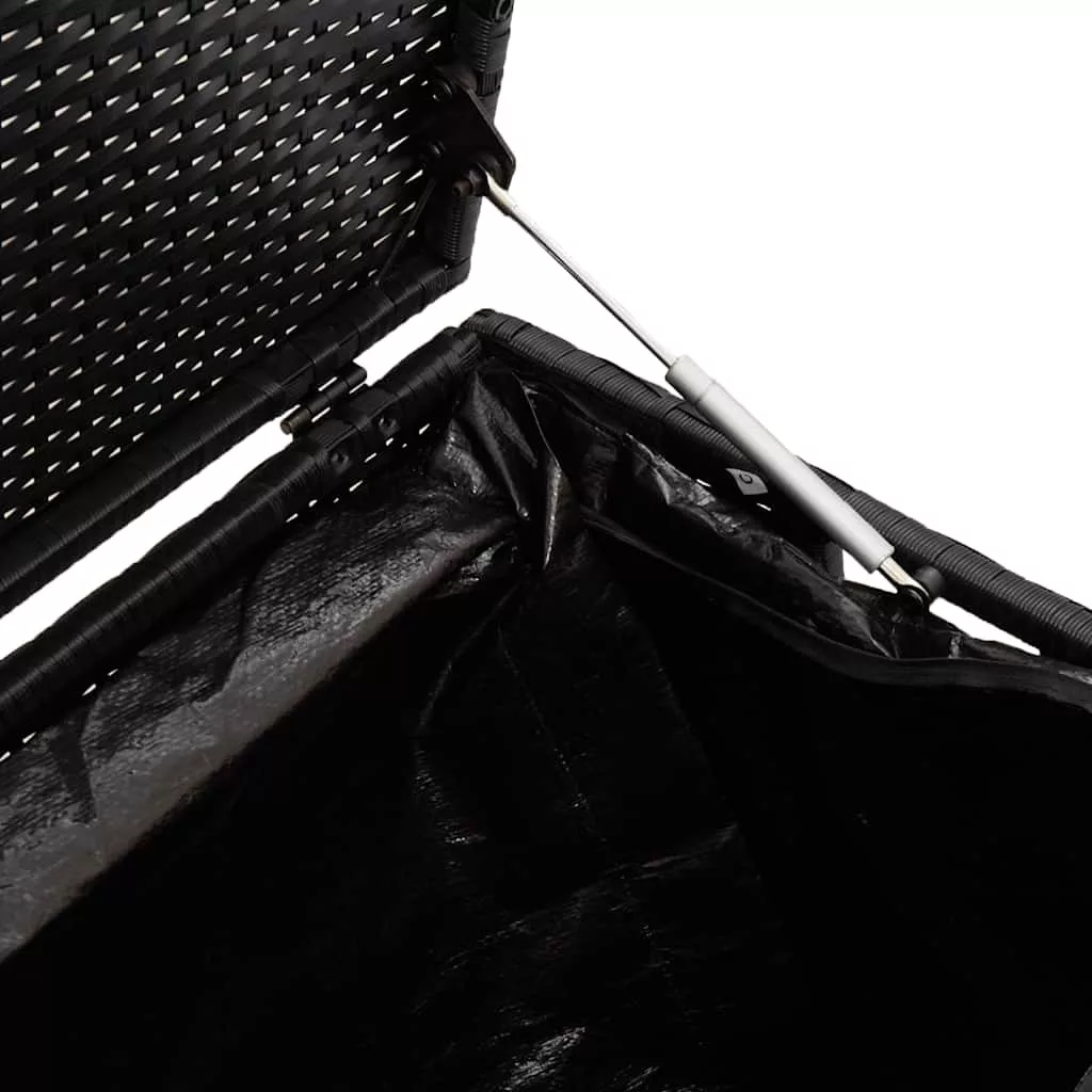 Ez a kerti tárolódoboz tökéletesen alkalmas a kültéri bútorpárnák, kerti kellékek, medencetörölközők és egyéb tárgyak rendezett és könnyen hozzáférhető tárolására. Tartós anyag: A PE rattan, más néven polyrattan, egy erős, kevés karbantartást igénylő szintetikus anyag, amely úgy néz ki, mint a természetes rattan. Könnyű, könnyen tisztítható, tartóssága és időjárásálló tulajdonságai miatt gyakran használják kültéri bútorok készítéséhez.Robusztus és stabil váz: A porszórt acélváz erős, stabil, tartós, ellenáll a korróziónak és a zord időjárásnak, így biztosítja a tartós használatot.Biztonságos és könnyen nyitható és zárható: A gázrugó megkönnyíti a fedél kinyitását, és megakadályozza, hogy becsapódjon vagy becsípje az ujjakat.Tárolási funkció: A kerti bútor alatt tárolóhely található, vízálló zsákkal felszerelve a párnák, játékok és egyéb tárgyak tárolására. Jó tudni:A kültéri bútor szépségének megőrzése érdekében javasoljuk, hogy vízálló huzattal fedje be.