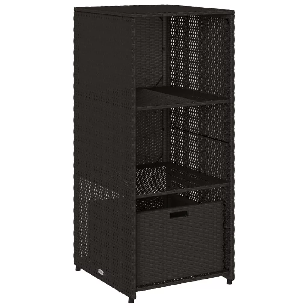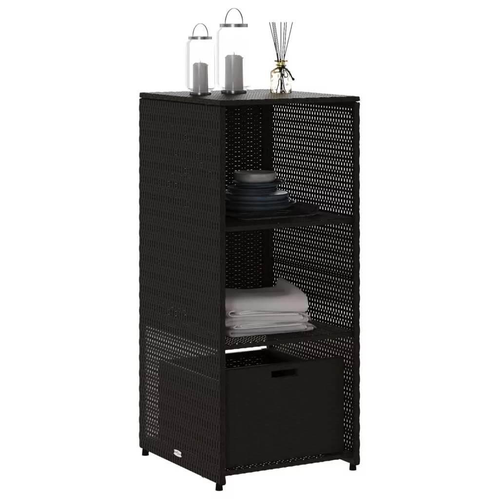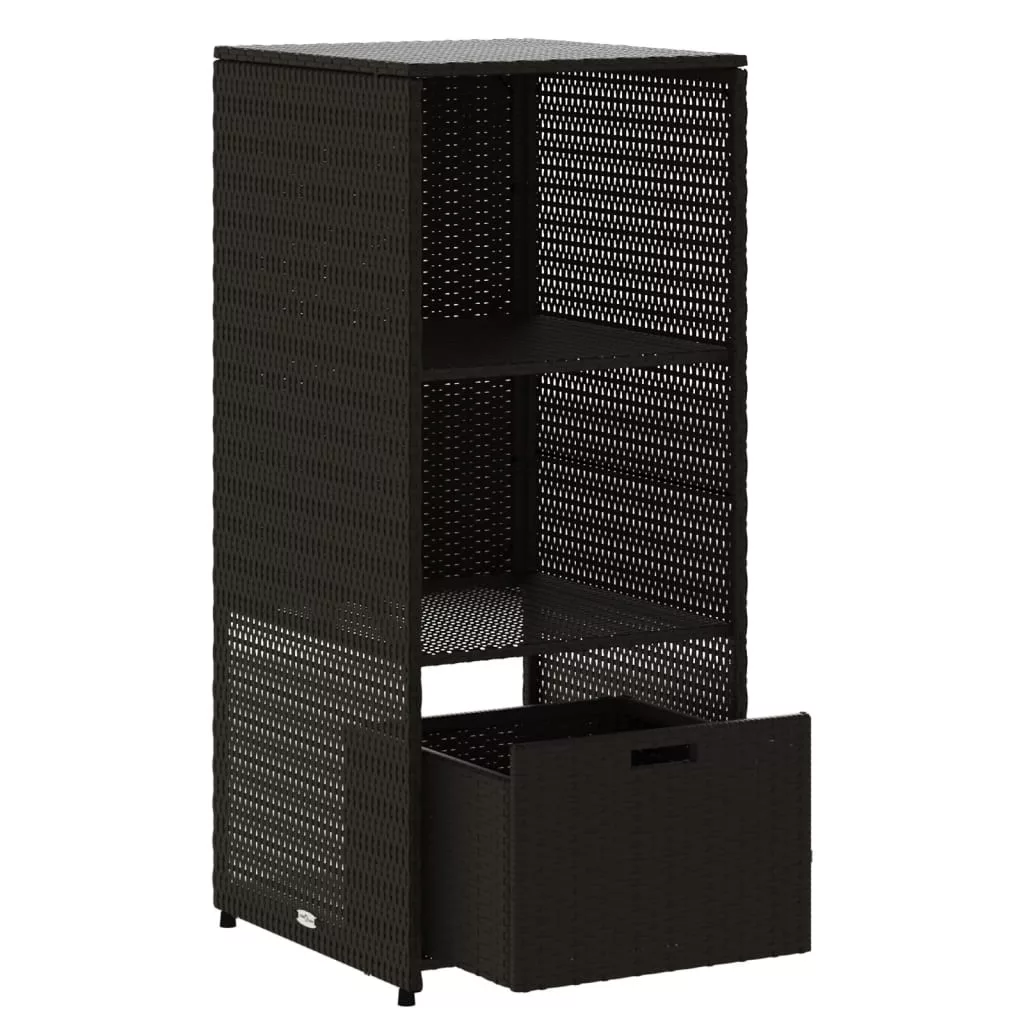 Ez a kerti tárolószekrény tökéletes a kerti bútorpárnák, kerti kellékek, medencetörölközők és egyéb tárgyak rendezett és könnyen hozzáférhető tárolására. Tartós anyag: A PE rattan, más néven polyrattan, egy erős, kevés karbantartást igénylő szintetikus anyag, amely úgy néz ki, mint a természetes rattan. Könnyű, könnyen tisztítható, tartóssága és időjárásálló tulajdonságai miatt gyakran használják kültéri bútorok készítéséhez.Bőséges tárolóhely: Ez a kültéri tárolószekrény 2 polccal és 1 fiókkal rendelkezik a kerti szerszámok, medencejátékok, kültéri párnák és egyebek tárolására.Robusztus és stabil váz: A porszórt acél váz biztosítja, hogy a kerti bútor erős és stabil legyen a mindennapi kültéri használathoz. FigyelemA felborulás elkerülése érdekében ezt a terméket a mellékelt fali rögzítőeszközzel kell használni. Jó tudni:A kültéri bútor szépségének megőrzése érdekében javasoljuk, hogy vízálló huzattal fedje be.