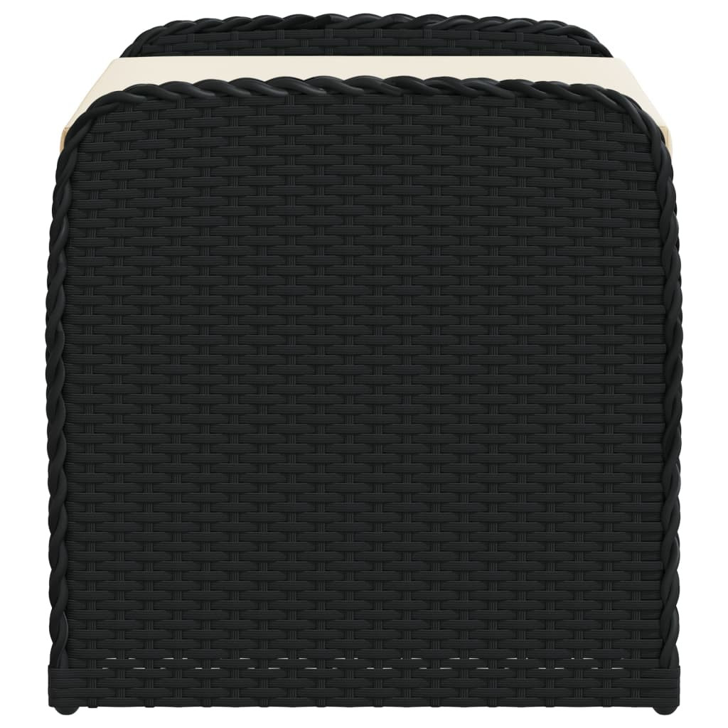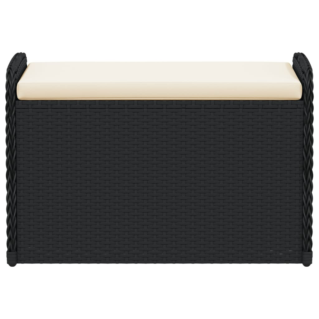 fekete polyrattan tárolópad párnával 80 x 51 x 52 cm