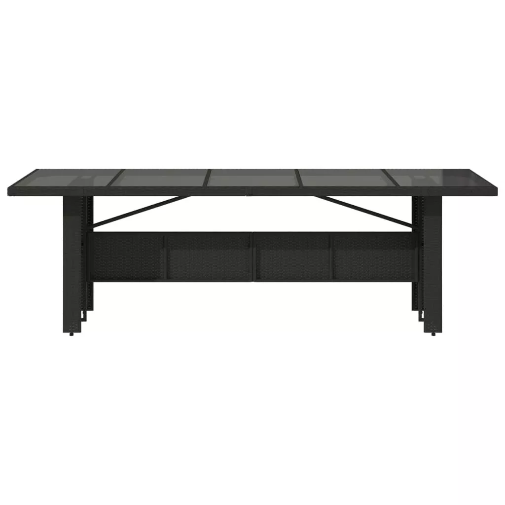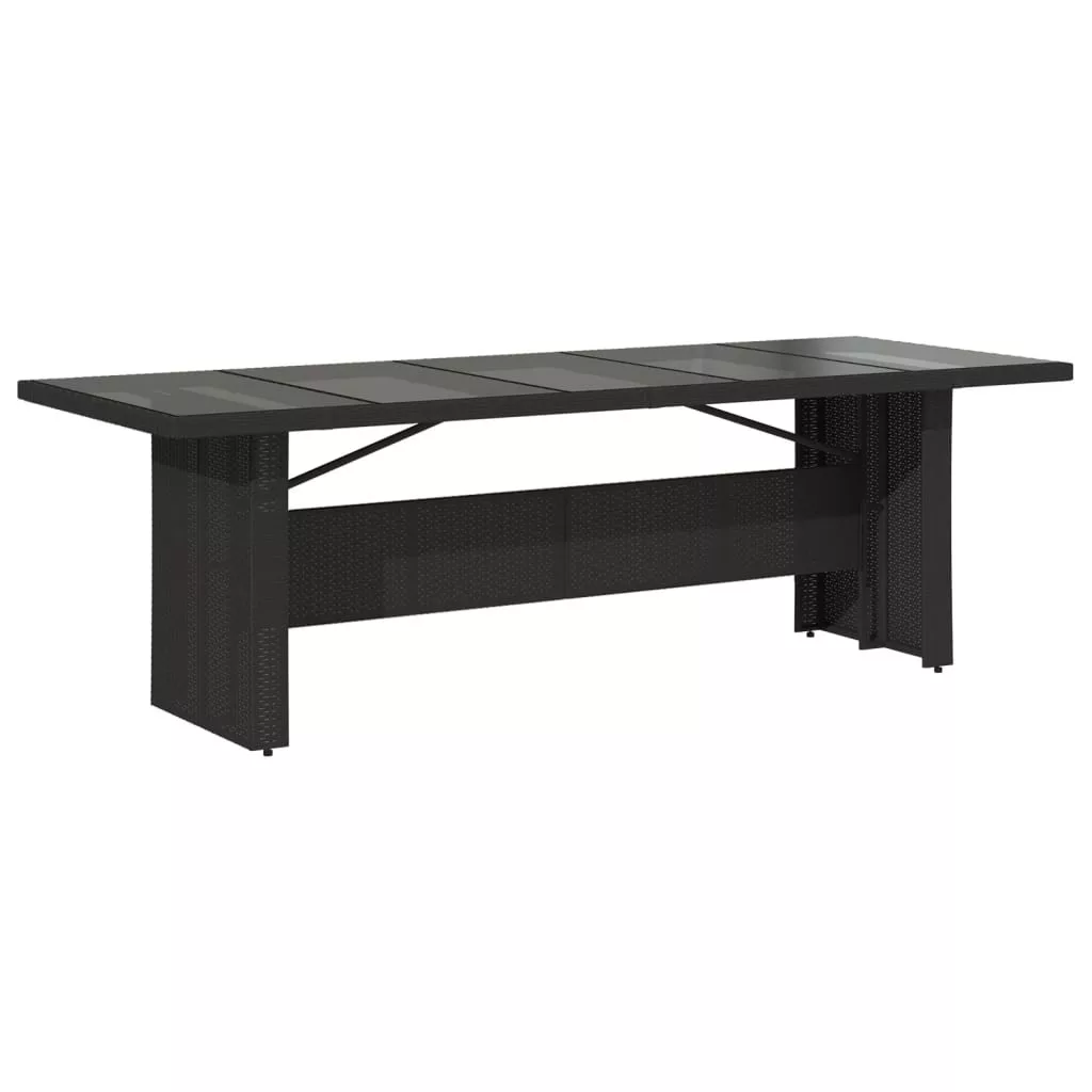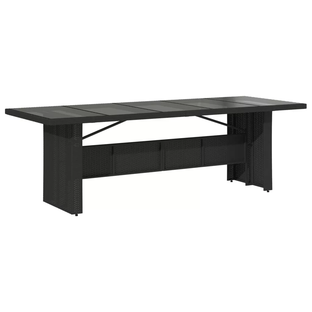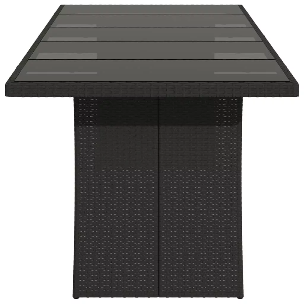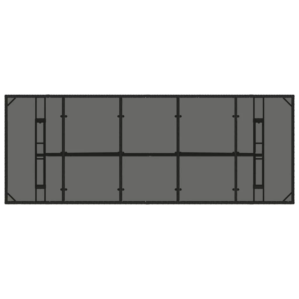 fekete polyrattan üveglapos kerti asztal 240 x 90 x 75 cm