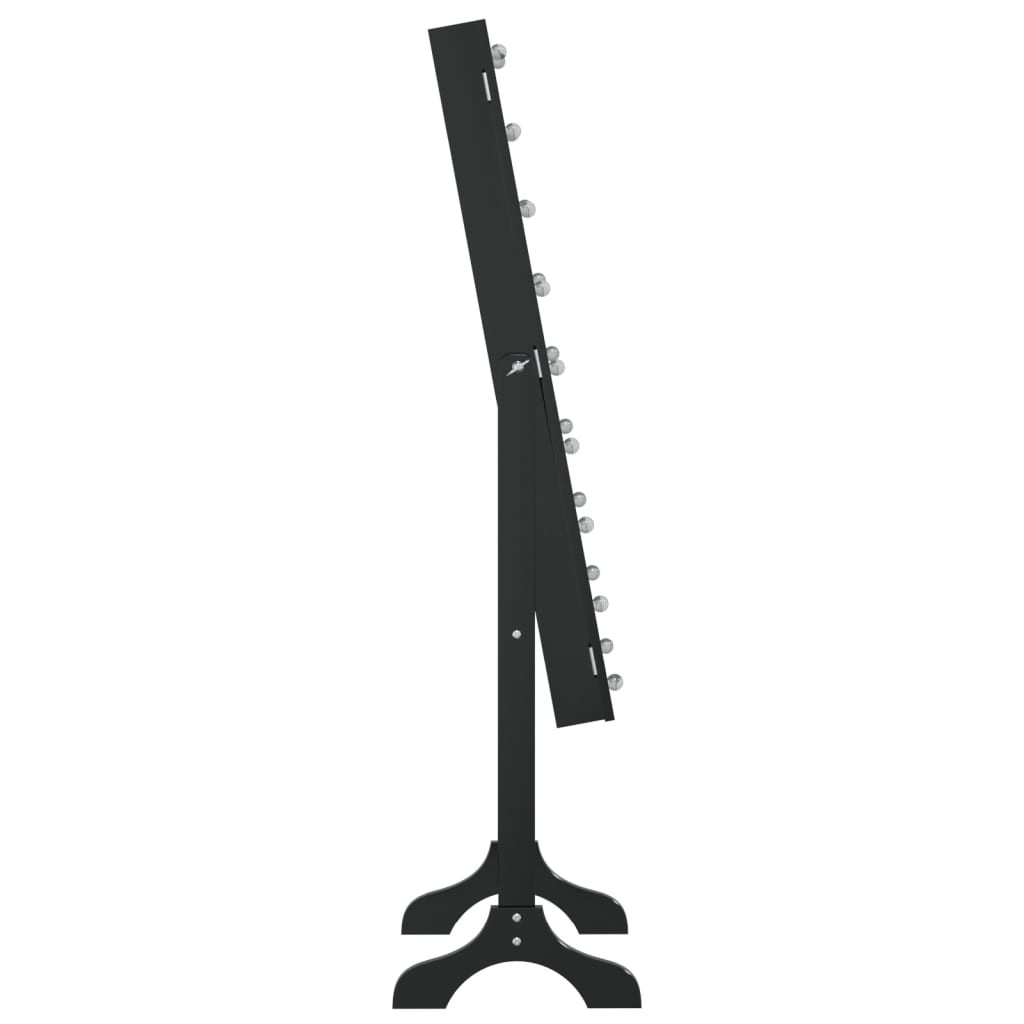 Ez a LED-del ellátott szabadon álló tükör elegáns kialakításával nagyszerű dekorációs kiegészítője lesz előszobájának, hálószobájának, öltözőjének, ruhatárának stb. Tartós anyag: A szerelt fa kivételes minőségű, sima felületű, szilárd, stabil, és ellenáll a nedvességnek.LED-lámpák: A tükör körüli LED-izzók megvilágítják az Ön szépségét.Tiszta kép: Az üveg tükörfelület tiszta képet biztosít. Így gyönyörűen és természetesen láthatja magát, amikor a sminktükör előtt áll.További tárhely: Ez az álló tükör bőséges tárolóhelyet kínál a tükör mögött, hogy könnyen hozzáférhessen a dolgaihoz.Egyedi dekoráció: Az állótükör azonnal eleganciát, csillogást és romantikát kölcsönöz beltéri életterének.