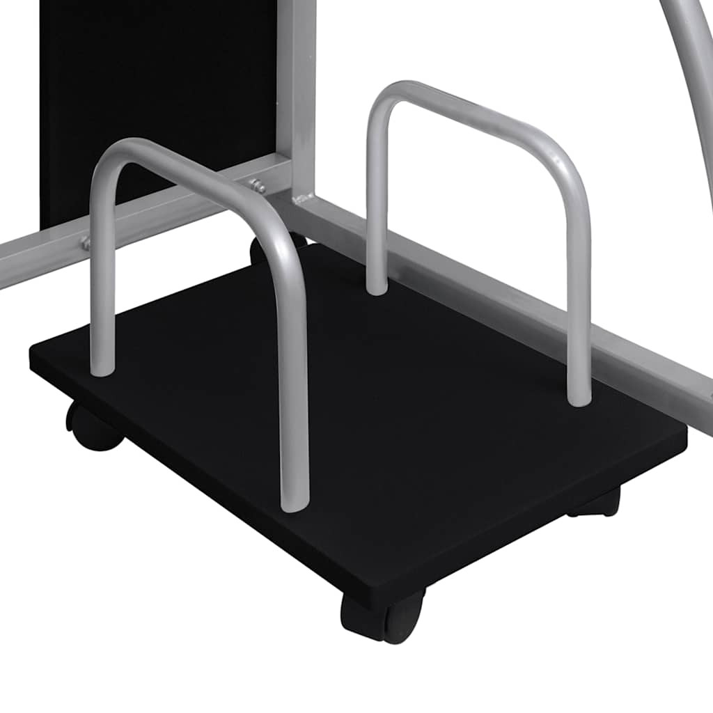 Ez az elengedhetetlen számítógépasztal tökéletesen fog illeszkedni otthoni irodájába, dolgozószobájába, hálószobájába vagy nappalijába. Tartós anyag: A szerelt fa kivételes minőségű, sima felületű, szilárd, stabil, és ellenáll a nedvességnek. Praktikus kialakítás: A játékasztal széles asztallappal rendelkezik a számítógép-képernyő és egér számára, valamint egy csúsztatható billentyűzettálcával, hogy az asztal rendezettebb és szabadabb maradjon.Bőséges hely: A széles munkafelület és a 2 polc további tárolóhelyet biztosít. Emellett ez a tanulóasztal egy kivehető alsó polccal is rendelkezik, amelyen elfér a számítógép-ház és a számítógép egyéb lényeges részei.Szabad mozgás: Ezt a íróasztalt a mellékelt kerekekkel bárhová áttolhatja a szobában. Ezenkívül 2 keréken fékek találhatók, amelyek a megfelelő helyzetben rögzíthetők az irányíthatóság és a biztonság érdekében. Megjegyzés:Az egyszerű összeszerelés érdekében minden termékhez mellékelünk összeszerelési útmutatót.