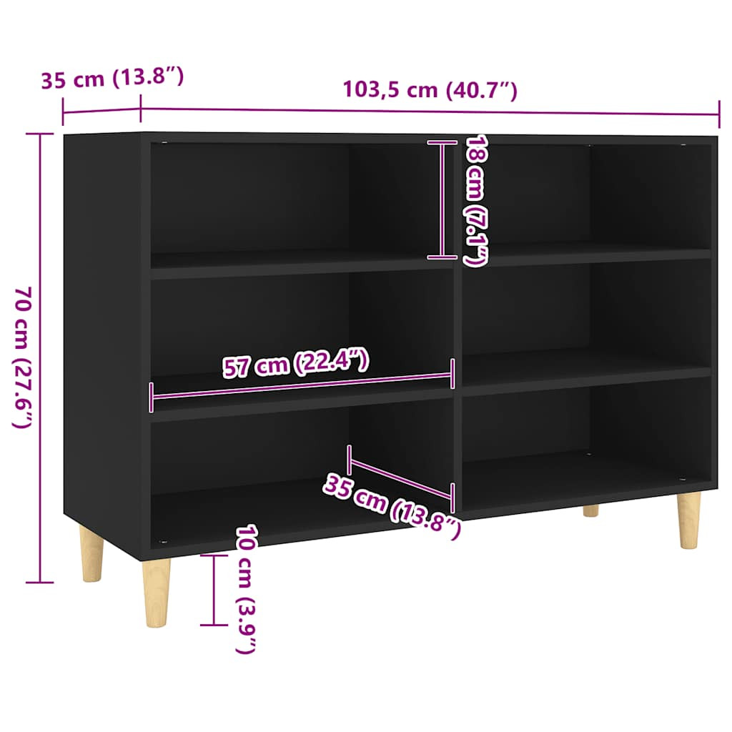fekete szerelt fa tálalószekrény 103,5 x 35 x 70 cm