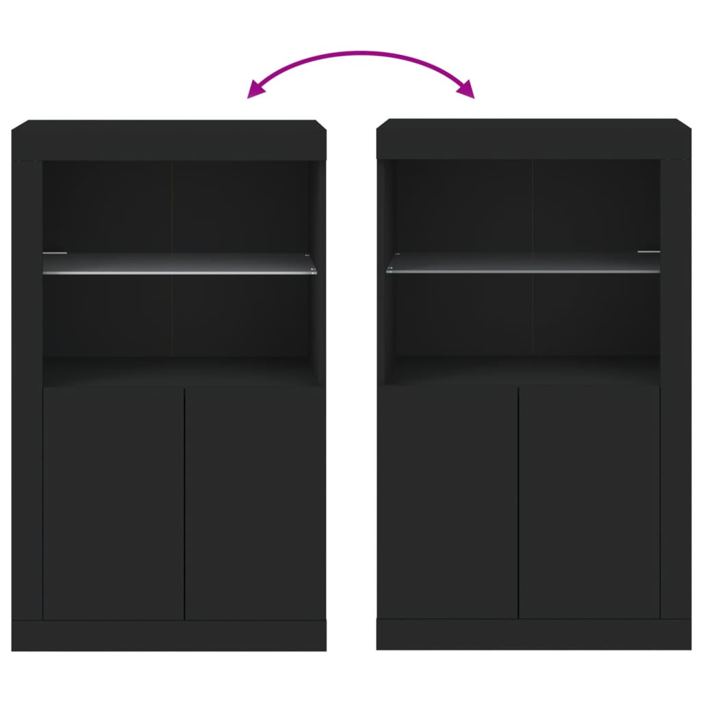 fekete szerelt fa tálalószekrény LED-világítással